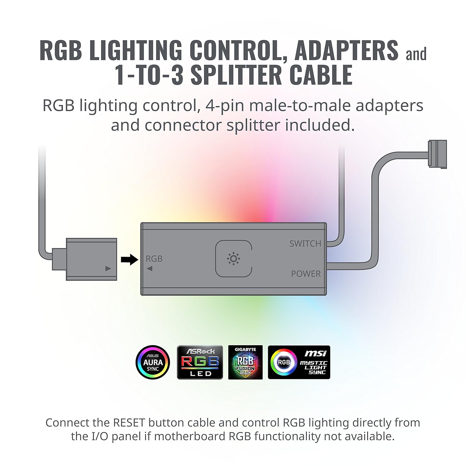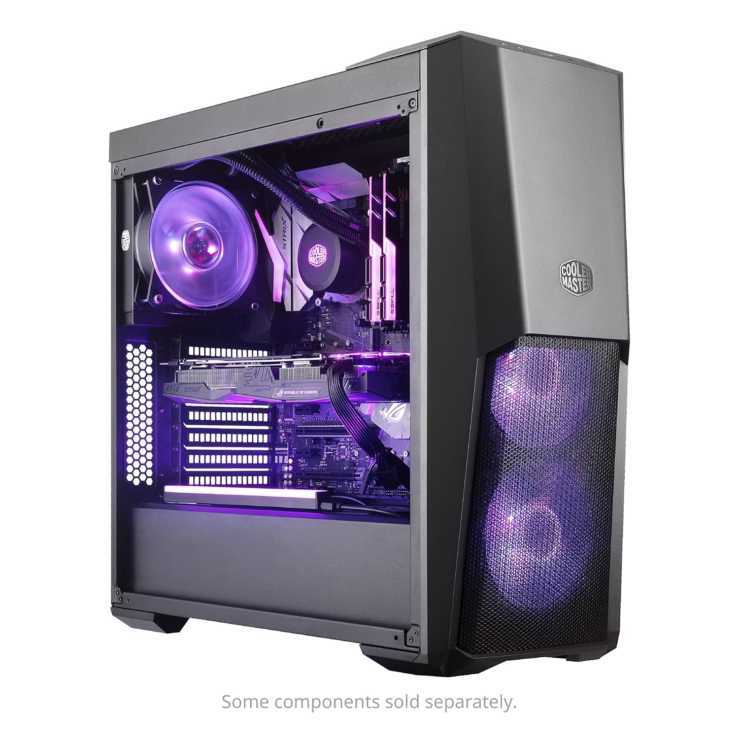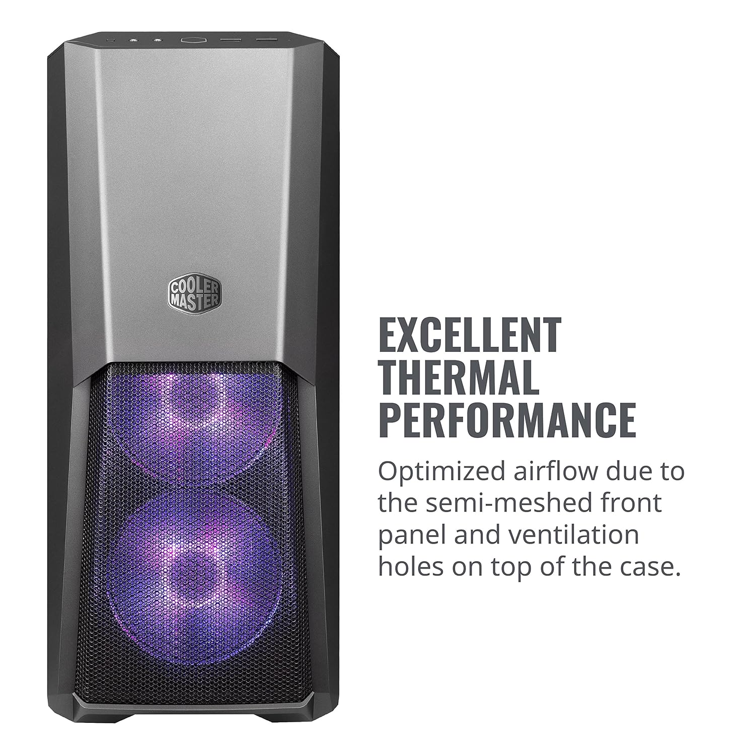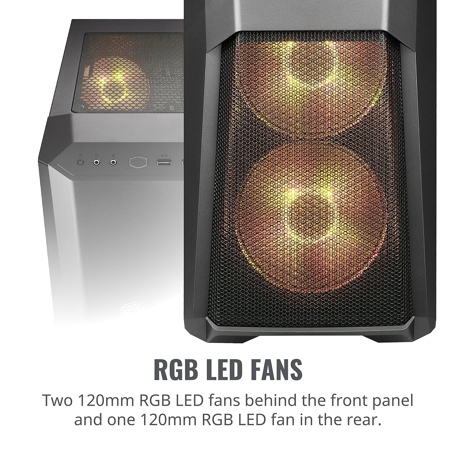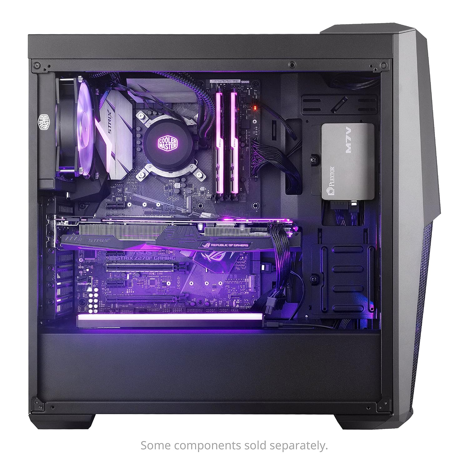 A semi-meshed front panel and ventilation holes on top will allow more airflow from the two pre-installed 120mm RGB fans in the front and one 120mm RGB fan in the rear. The excellent thermal performance and aggressive outlook of the Master Box MB500 make it a perfect choice for Gamers and PC enthusiasts. The spacious interior and two chamber design allows you to assemble the case faster and cleaner. It can support up to a 360mm radiator, 400mm in length for graphic card, 160mm in height for CPU cooler and 180mm in length for PSU. Show off your unique build through the 4mm thick edge-to-edge tempered glass side panel. |