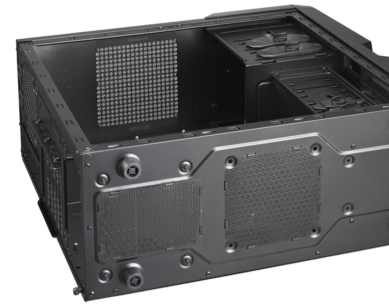 Hard core gamers and people who multitask for hours on end on their computer system can take a look at the Cooler Master K380 / Window / USB 3.0 Case. It provides fine cooling to your desktop or notebook PCs through its honeycomb and mesh vent on the front panel. There's also a 120 mm red LED fan located at the bottom section of the front panel that functions quietly and efficiently to increase this K380 / Window / USB 3.0 Case's cooling capabilities. You can also install up to three more cooling fans at the rear, bottom and side compartments of the K380 / Window / USB 3.0 Case just keeping certain particulars in mind. The rear fan must have 80/90/120 mm width, the bottom fan must have 120 mm width and the side fan must have 120 mm width. |