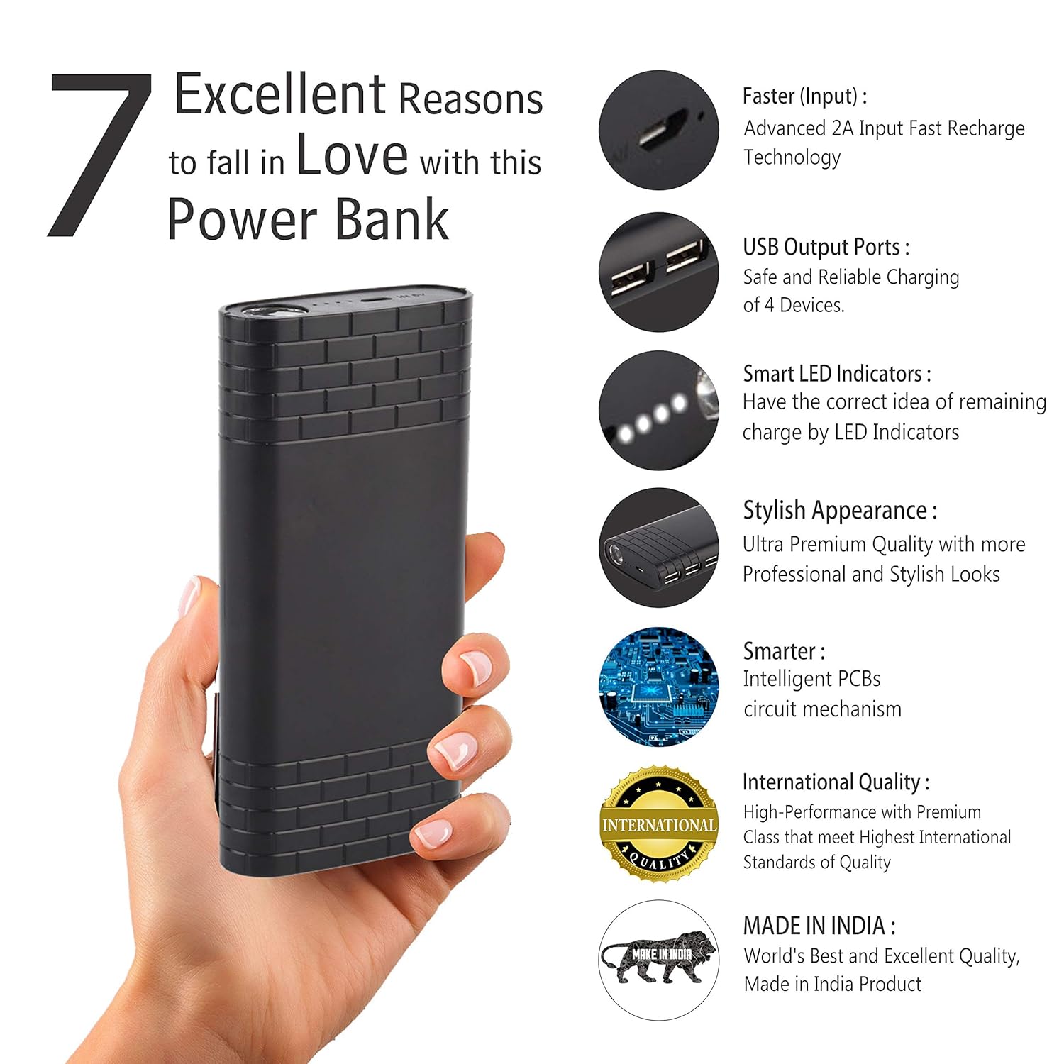 | Additional Features | High-Quality original Li-ion cells, fully protected for your mobile and other 5V devices, auto-off feature when no unit is connected.,, Portable Battery charger to conveniently charge your devices. Stylish design with elegant curves on edges offers perfect elegance with beauty., Trendy and refined shape with high-quality finish., Redefined shape and design to suit your daily charging needs easily., Carry it anywhere you go., Safe and reliable, perfect for using on travelling and outdoor activiti |