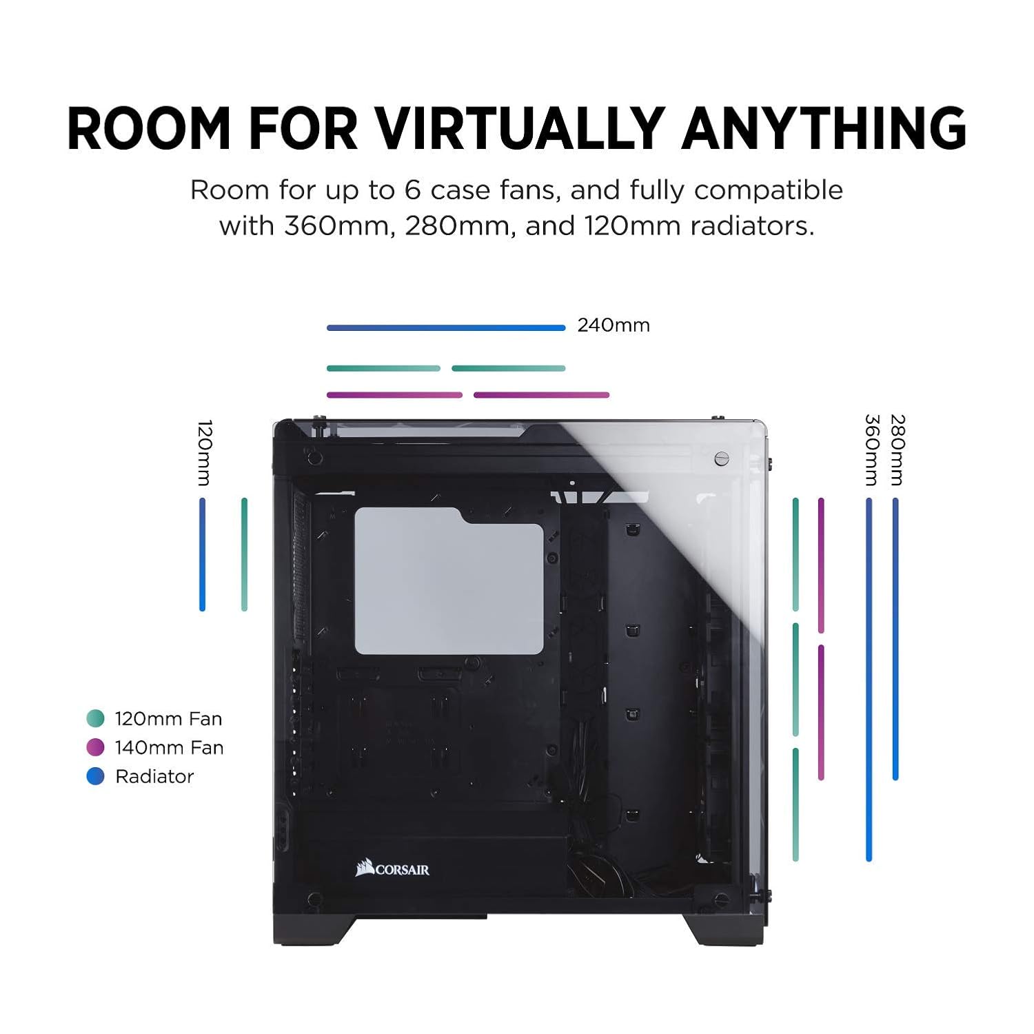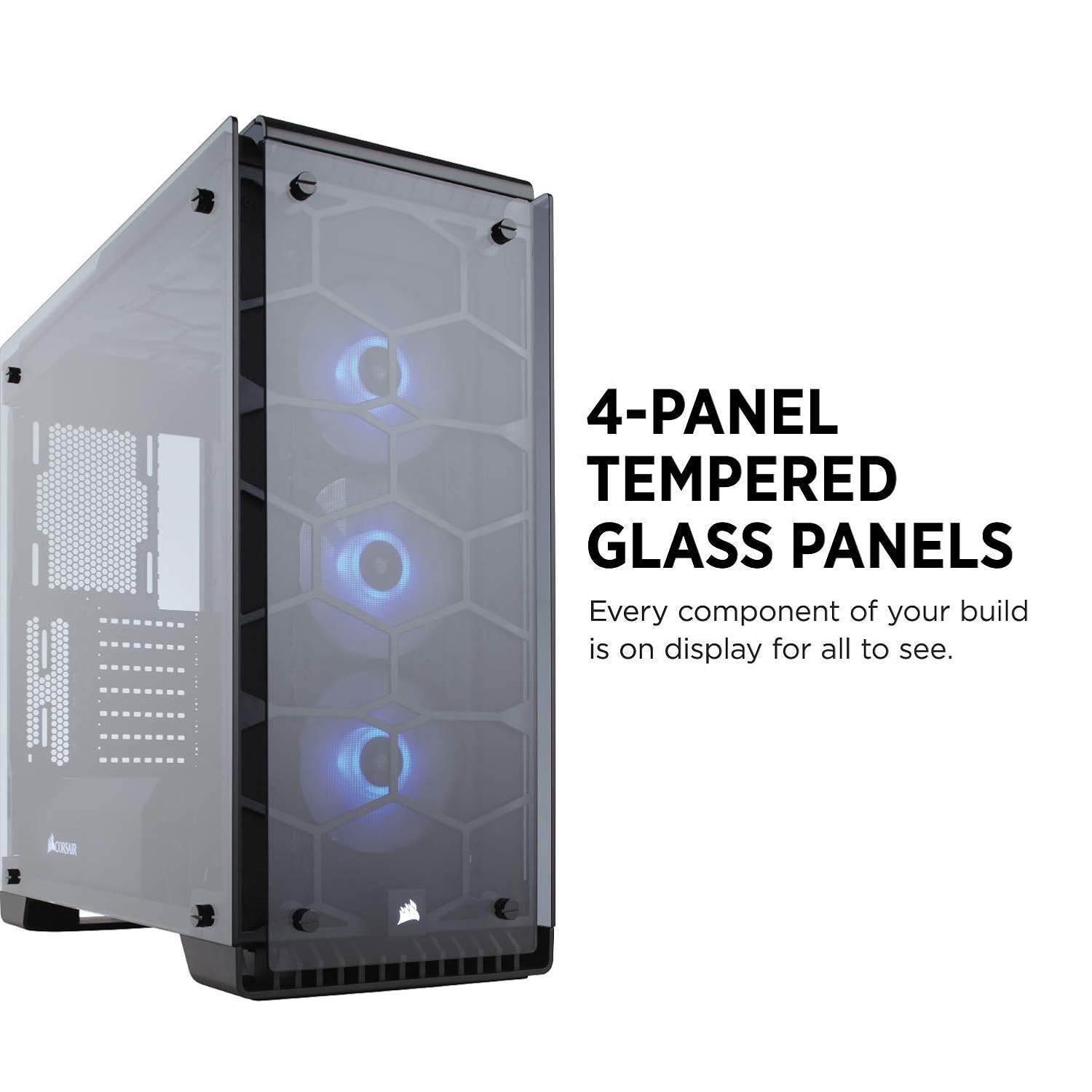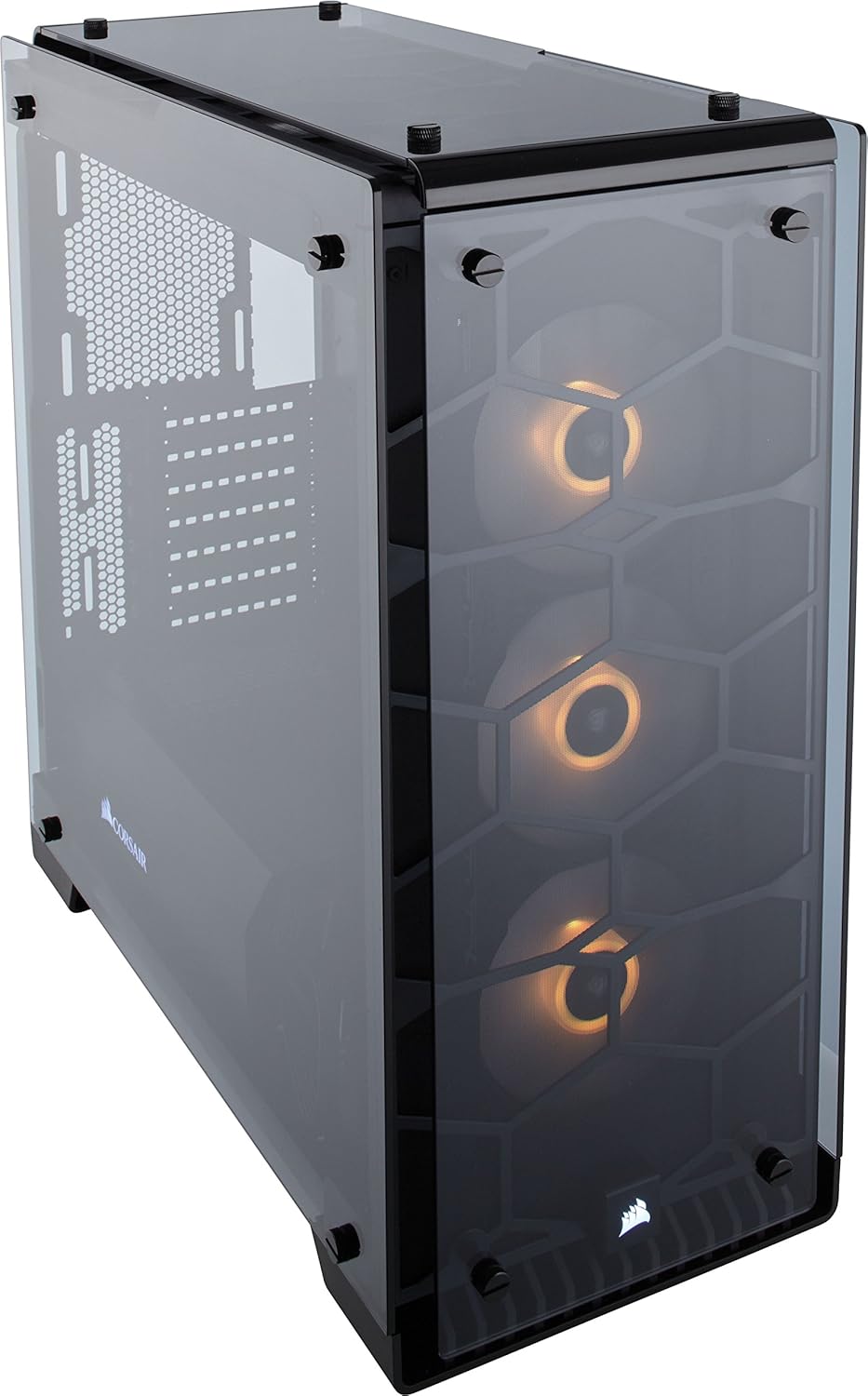 Corsair Crystal Series 570X RGB Mid Tower Computer Chassis, ATX/mat/mix, 3x120mm RGB Fan; Tempered glass panels on the front, top, and sides of the case: Possibly the most beautiful case CORSAIR has ever made. With tempered glass enclosing the entire chassis, every component of your build is on display for all to see. |
