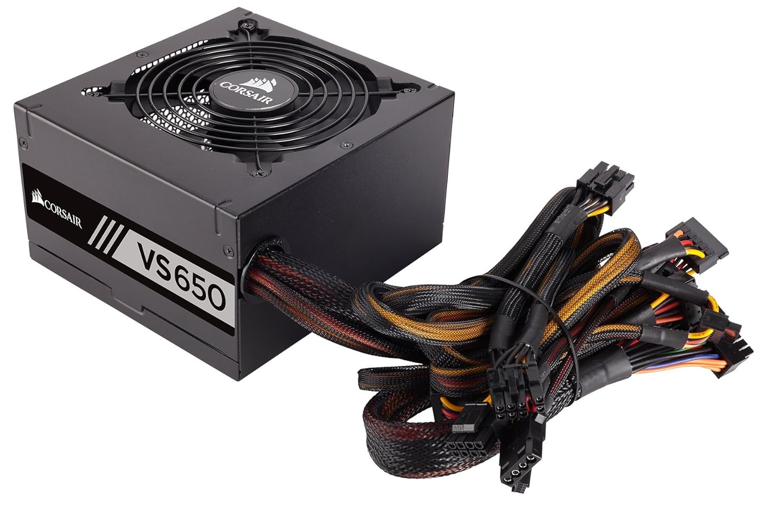 The Corsair VS series combines stable 80 PLUS efficiency power and an affordable price from the world’s most trusted name in PC power supplies. Black cables, cable sleeves and connectors make it easy to build a great looking PC, while it’s super-compact 125mm deep housing fits in almost any modern PC case for maximum compatibility. With a large 120mm fan that’s tuned for quiet operation across a wide range of loads and a 3-year warranty for total piece of mind, the Corsair VS series is the essential PSU for PC builders, enthusiasts and gamers. |