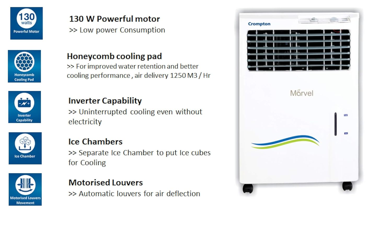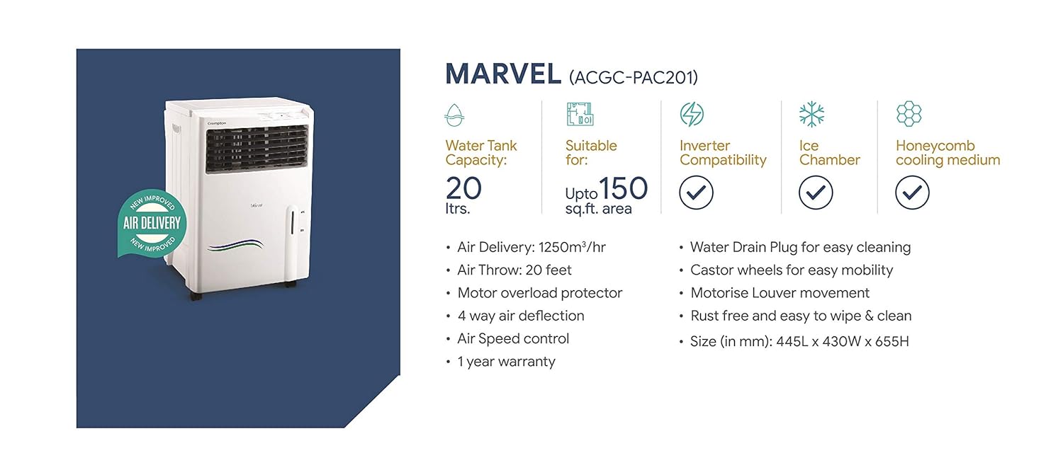 Air coolers are the best solution to fortify you against harsh and blistering summers. Air coolers are proficiently designed to fit in any corner of the room while providing an efficient cooling experience that will satisfy every cooling need. As compared to other air circulation systems, air coolers offer a larger area of horizontal air flow, ensuring an efficient, cool air circulation and uses fresh outdoor air in order to cool the room which is good for health. Air coolers are economical, uses less electricity and is portable wherein you can use anywhere in your home indoor or outdoor. Note: Incaseof any issue with the product, kindly contact brand at 1800 419 0505 (9 am to 7 pm) Monday to Saturday. |