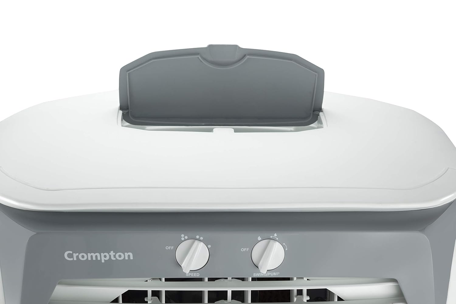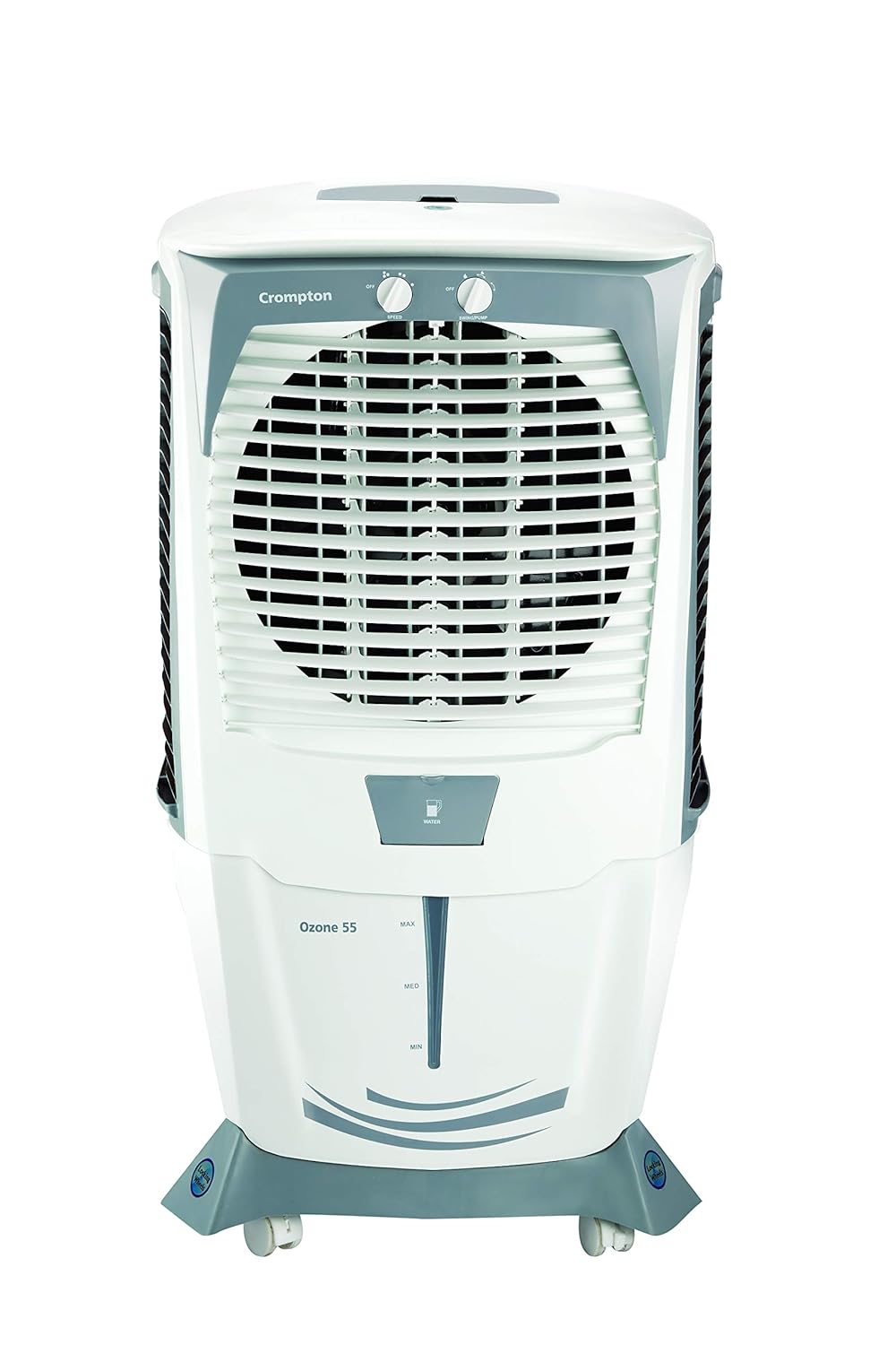 The product is Crompton Ozone 55 Litre Honey Comb Pad Desert Air Cooler which comes in grey and white colour. |