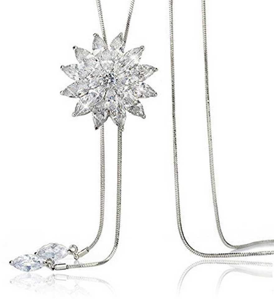 Crystal Flower Chain Pendent for Girls Stylish Party Wear Pendant Necklace |