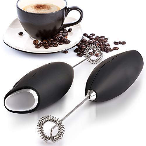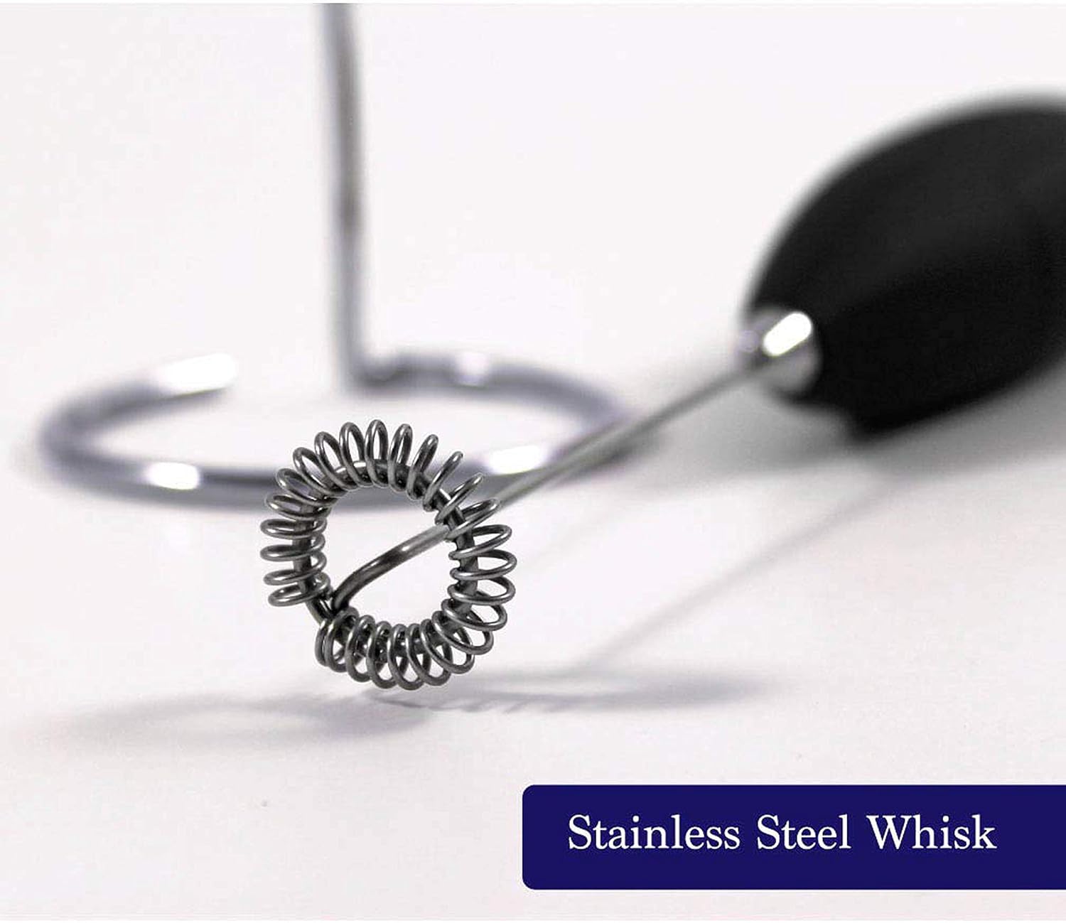 CuppaJoe Plastic Milk Frother Handheld Battery Operated Electric Foam Maker with Stainless Steel Whisk, Stainless Steel Stand Included, Black