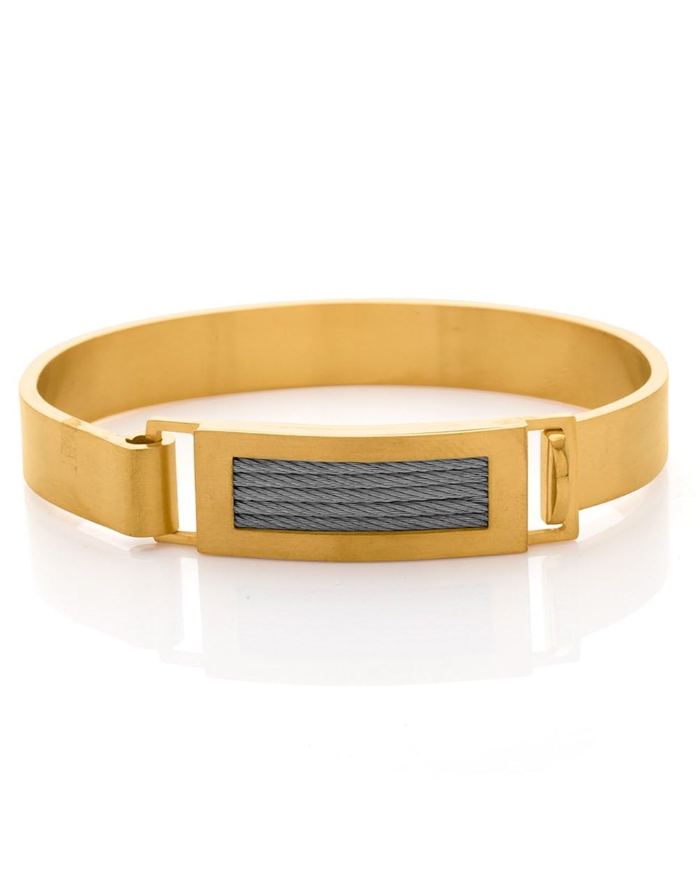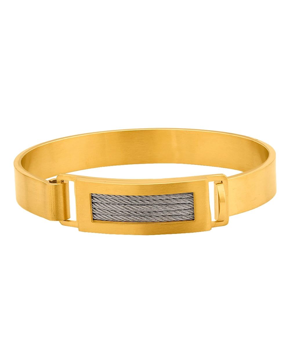 This dual tone cuff bracelet is stylish and elegant. Its unique silver plated rope design would make you stand out in occasions. Crafted out of stainless steel, this piece would go with both casual and business outfits. To make your accessories last longer avoid harsh chemicals and moisture. Keep dry, clean with dry cloth and wear with panache. "From the House of Voylla, Indiaâ€s largest fashion jewelry brand comes DARE, a line of handcrafted accessories for the modern Indian man. |