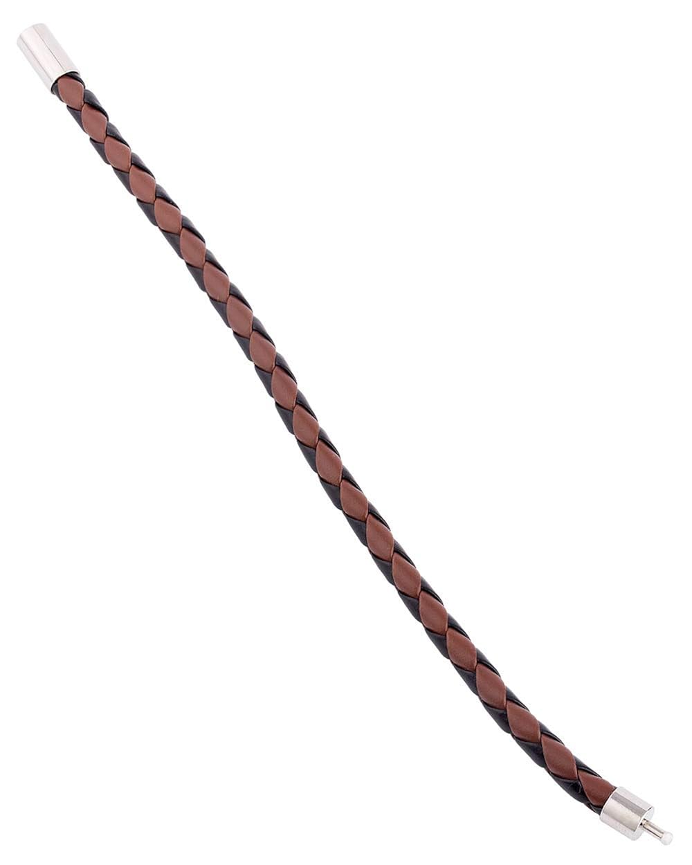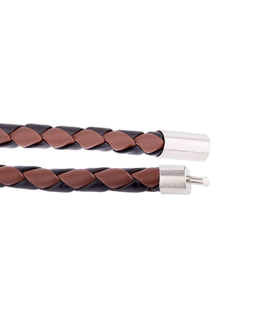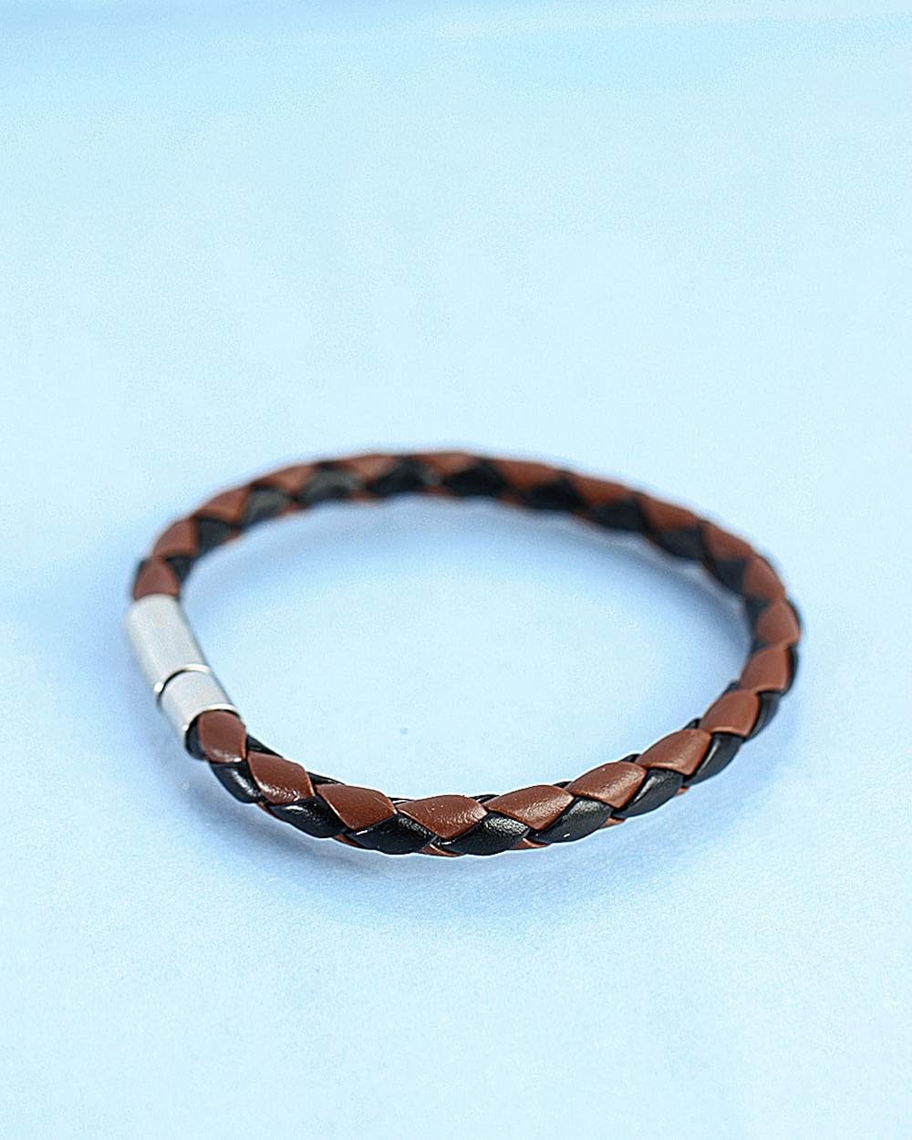 Classic mesh pattern leather bracelet with a snap closure. Silver plated and perfect for casual and semi-formal gathering Match with a leather jacket. To make your accessories last longer avoid harsh chemicals and moisture. Keep dry, clean with dry cloth and wear with panache. "From the Dare by Voylla, India's largest fashion jewelry brand comes DARE, a line of handcrafted accessories for the modern Indian man. |