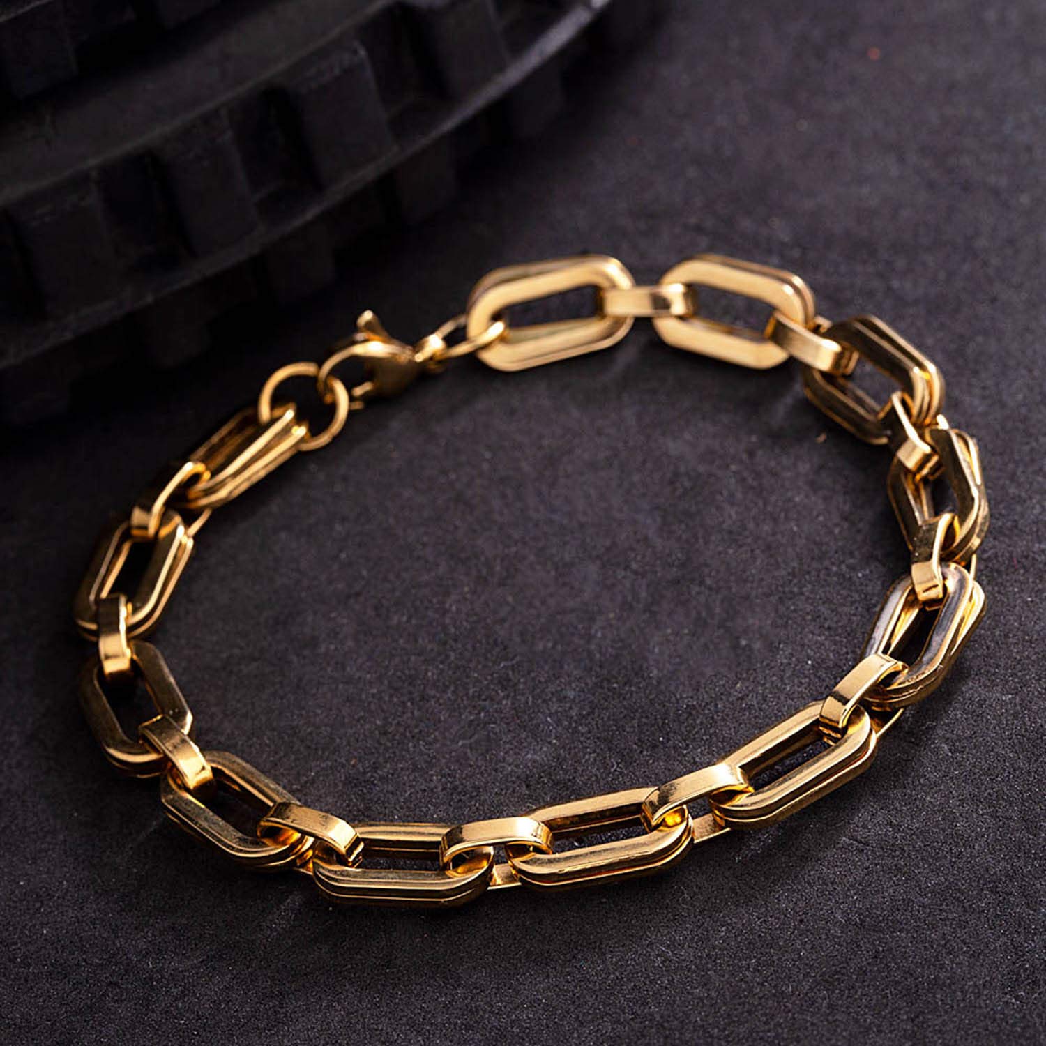 Gold plated stainless steel bracelet for men. Pair with formal looks. To make your accessories last longer avoid harsh chemicals and moisture. Keep dry, clean with dry cloth and wear with panache. "India�s largest fashion jewelry brand DARE, comes from the House of Voylla as a limited edition of handcrafted accessories for the modern Indian men. |