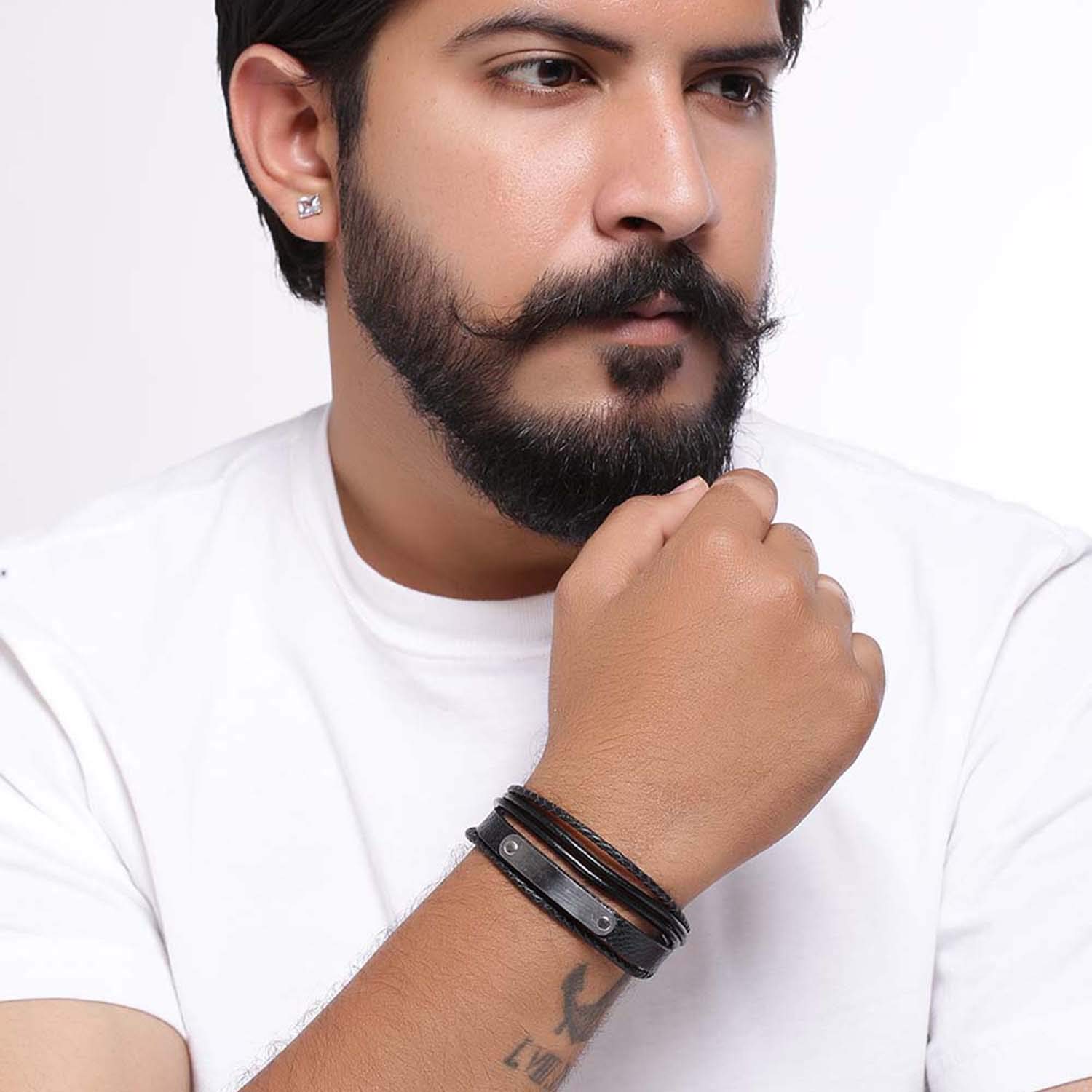 Stainless steel layered style bracelet. Silver plated. Good for everyday wear. To make your accessories last longer avoid harsh chemicals and moisture. Keep dry, clean with dry cloth and wear with panache. "India's largest fashion jewelry brand DARE, comes from the House of Voylla as a limited edition of handcrafted accessories for the modern Indian men. |