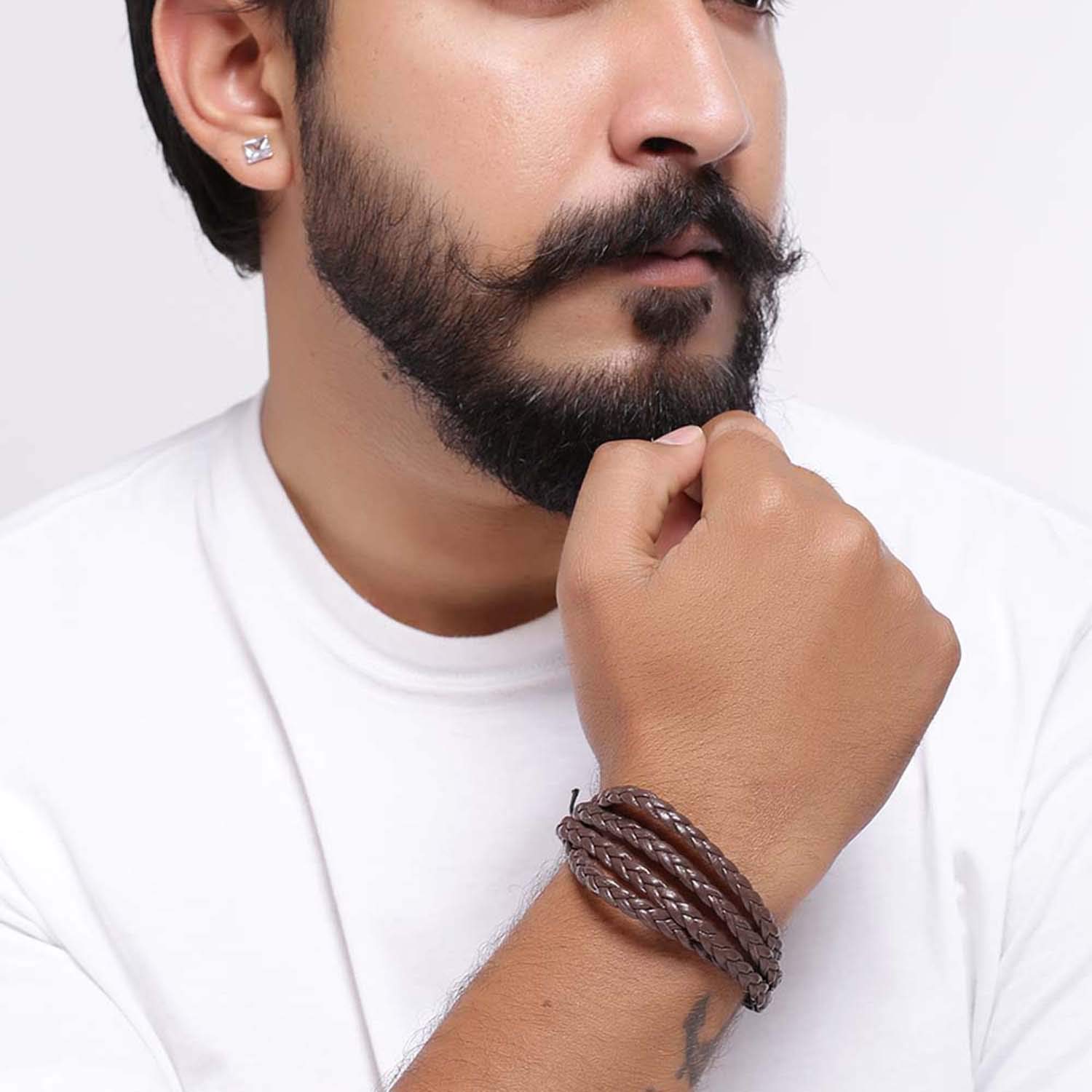 Men's stainless steel threaded bracelet with black rhodium plating. Pair with everyday attire. To make your accessories last longer avoid harsh chemicals and moisture. Keep dry, clean with dry cloth and wear with panache. "India�s largest fashion jewelry brand DARE, comes from the House of Voylla as a limited edition of handcrafted accessories for the modern Indian men. |