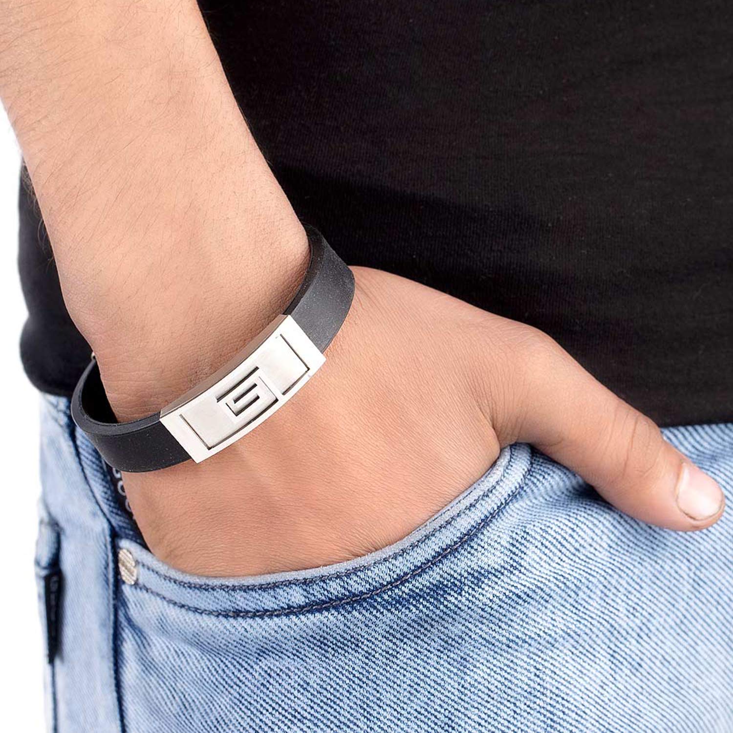 Classic stainless steel bracelet for men with silver plating. Lightweight and comfortable. To make your accessories last longer avoid harsh chemicals and moisture. Keep dry, clean with dry cloth and wear with panache. "Indiaâ€s largest fashion jewelry brand DARE, comes from the House of Voylla as a limited edition of handcrafted accessories for the modern Indian men. |