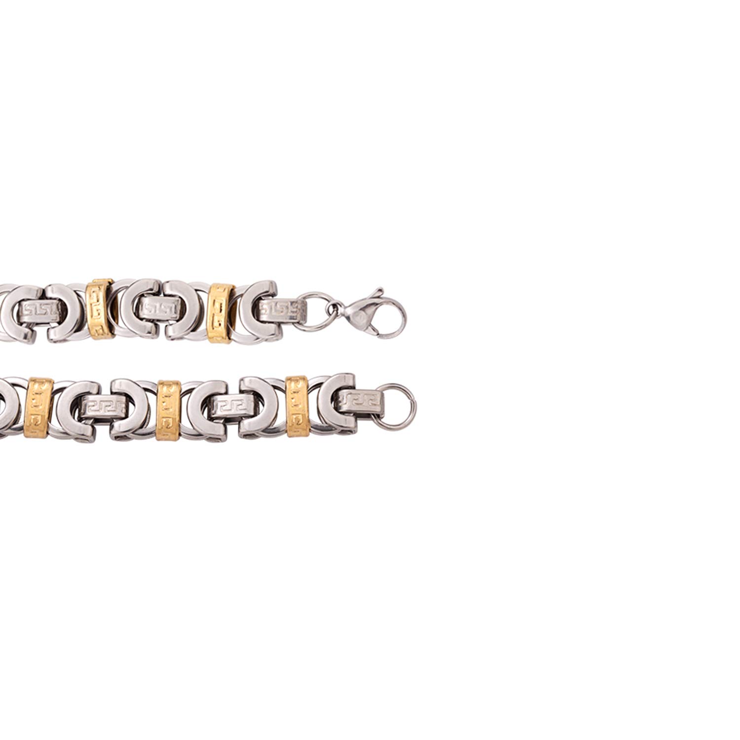 Link bracelet for men. Two tone plated and made from stainless steel. Pair with casual looks. To make your accessories last longer avoid harsh chemicals and moisture. Keep dry, clean with dry cloth and wear with panache. "India�s largest fashion jewelry brand DARE, comes from the House of Voylla as a limited edition of handcrafted accessories for the modern Indian men. |