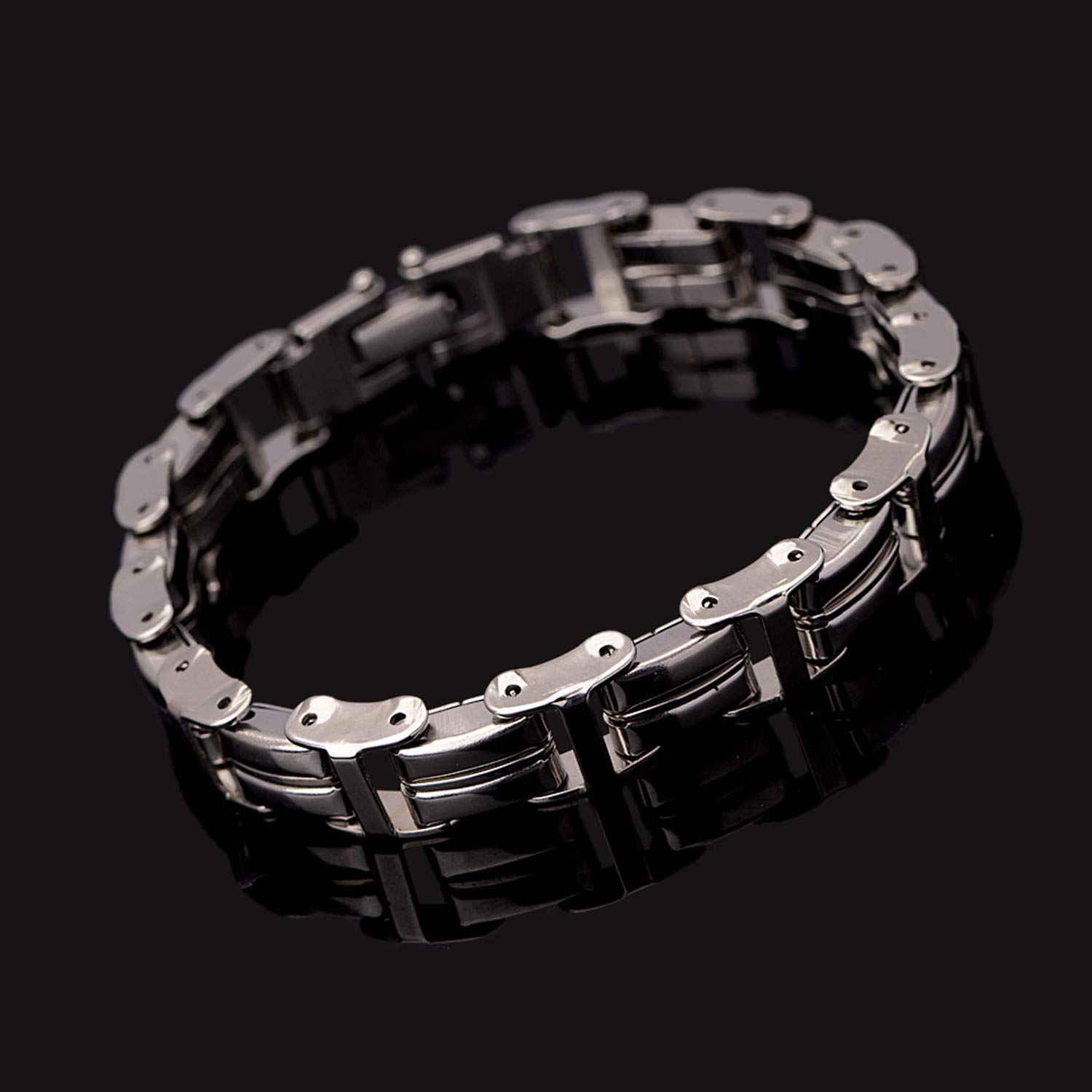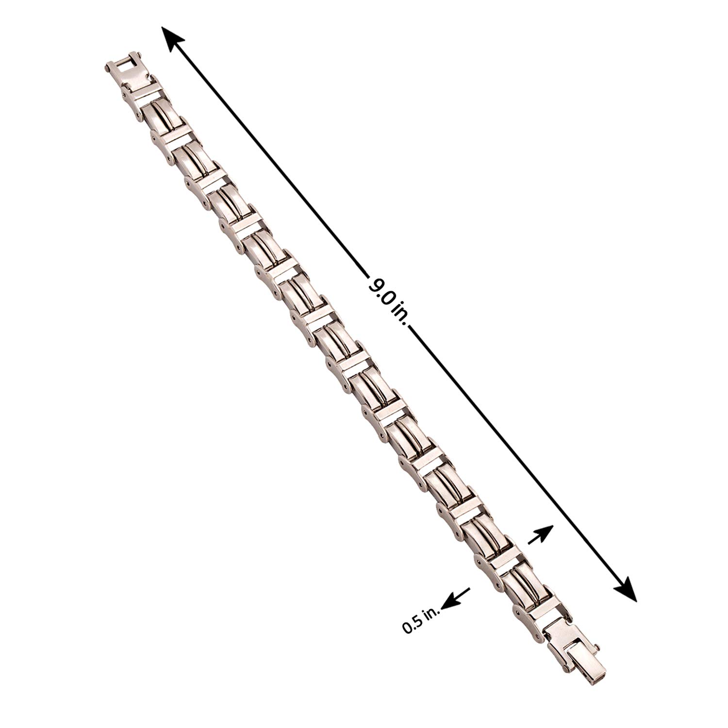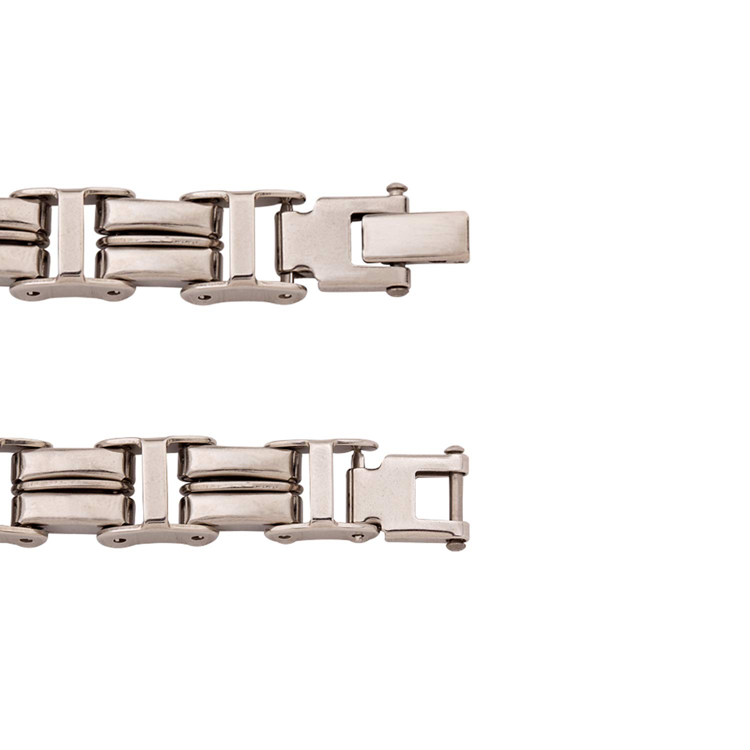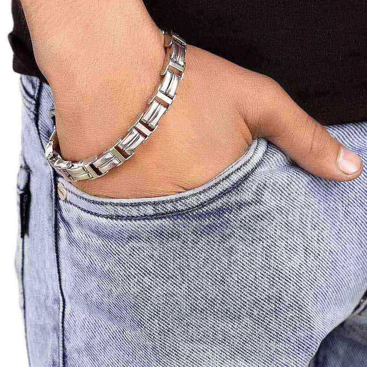Stainless steel link bracelet for men. Silver plated and a good match for party attire. To make your accessories last longer avoid harsh chemicals and moisture. Keep dry, clean with dry cloth and wear with panache. "Indiaâ€s largest fashion jewelry brand DARE, comes from the House of Voylla as a limited edition of handcrafted accessories for the modern Indian men. |