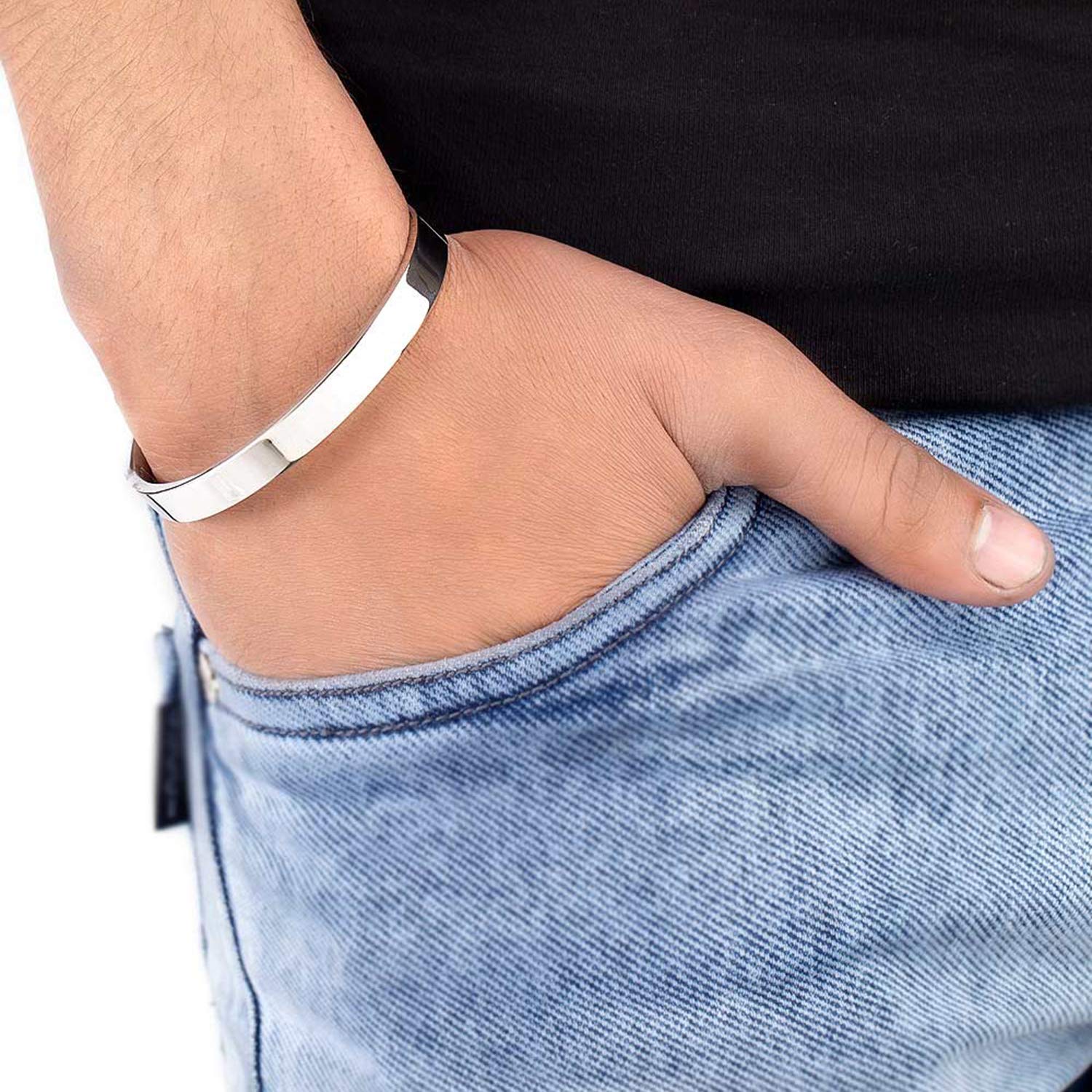 Silver plated clasp style bracelet for men, fashioned out of stainless steel. Good match for party looks. To make your accessories last longer avoid harsh chemicals and moisture. Keep dry, clean with dry cloth and wear with panache. "Indiaâ€s largest fashion jewelry brand DARE, comes from the House of Voylla as a limited edition of handcrafted accessories for the modern Indian men. |