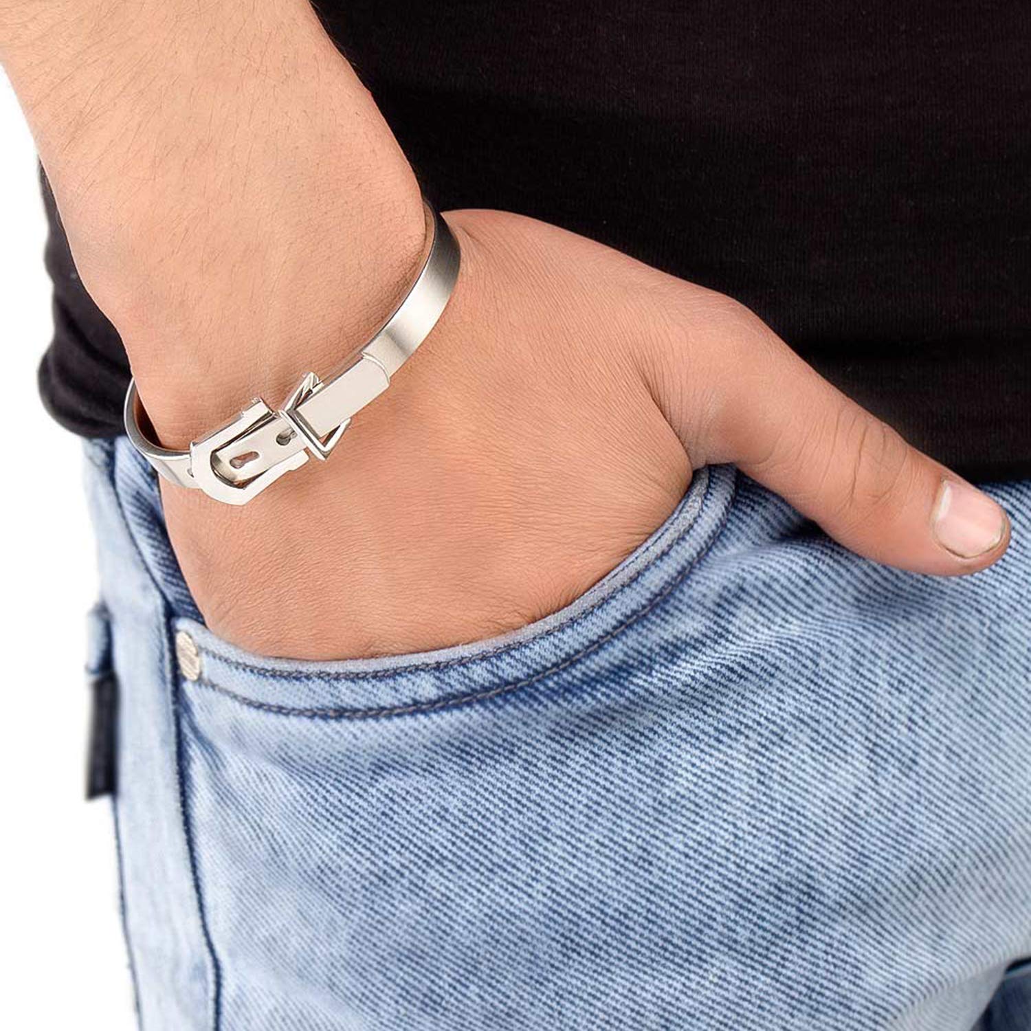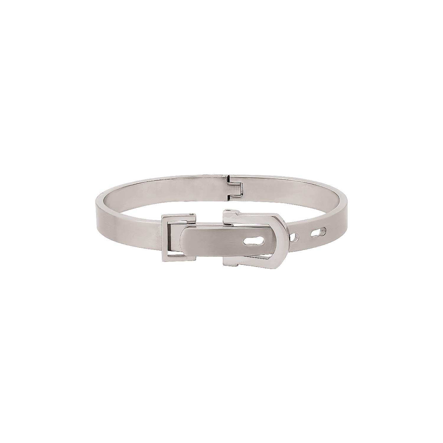 Silver plated watch men bracelet for men, fashioned out of stainless steel. Good match for party outfits. To make your accessories last longer avoid harsh chemicals and moisture. Keep dry, clean with dry cloth and wear with panache. "Indiaâ€s largest fashion jewelry brand DARE, comes from the House of Voylla as a limited edition of handcrafted accessories for the modern Indian men. |