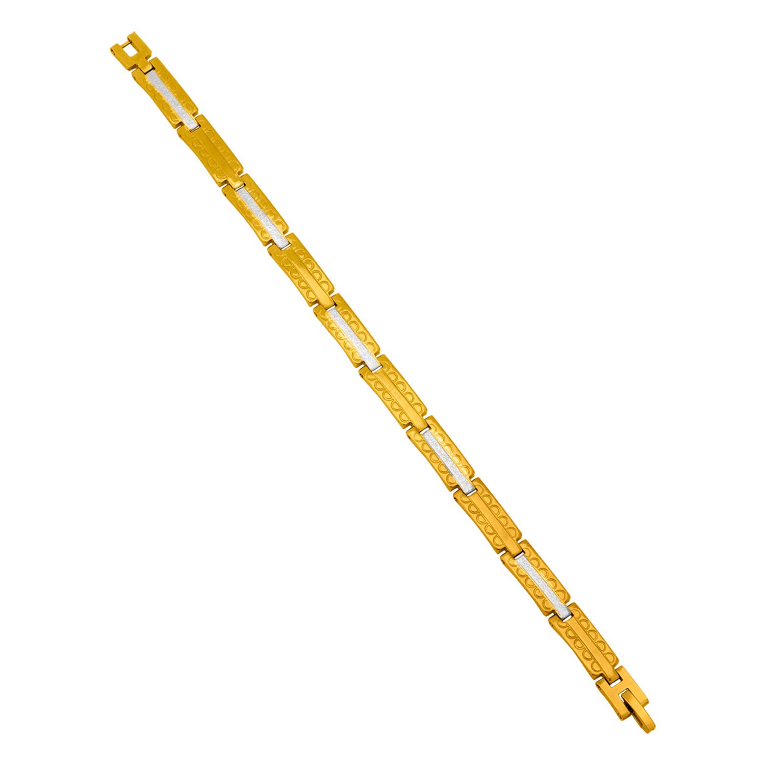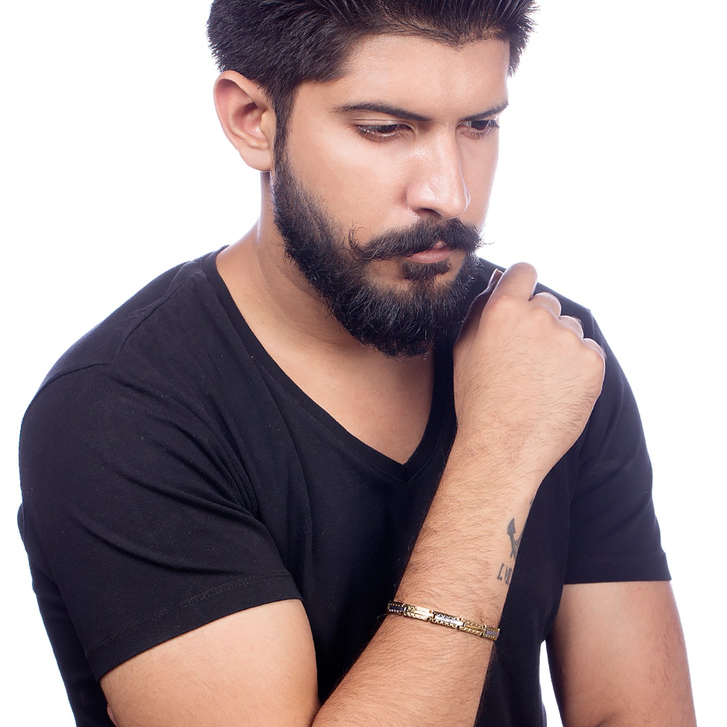 Clasp this DARE by Voylla bracelet on your wrist and command attention everywhere you go! Stainless steel of the best, toughest quality has been used in the making of this solid accessory. Dual tone plating gives a vintage edge to this masterpiece, which will compliment all your looks. To make your accessories last longer avoid harsh chemicals and moisture. Keep dry, clean with dry cloth and wear with panache. "From the House of Voylla, Indiaâ€s largest fashion jewelry brand comes DARE, a line of handcrafted accessories for the modern Indian man. |