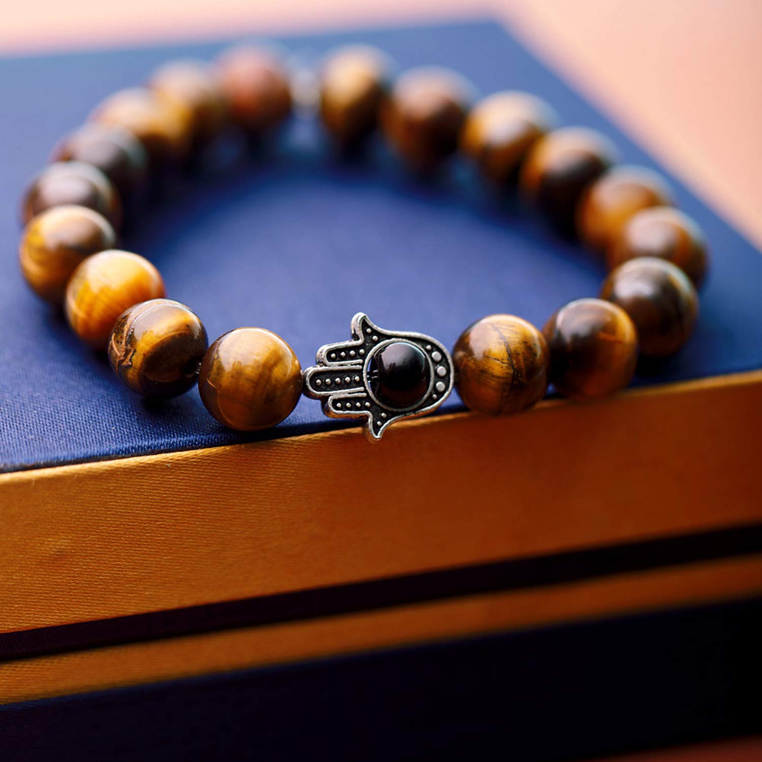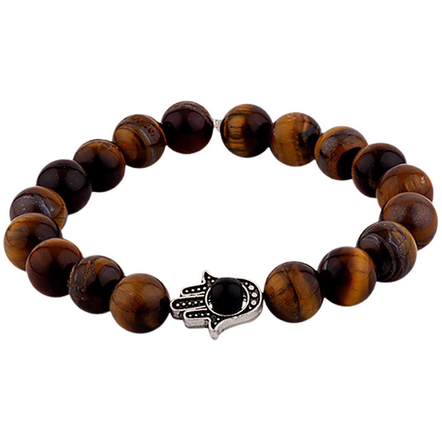 Featuring a Hamsa motif, this beaded bracelet has been fashioned out of brass. Oxidized silver plated, wear with a casual t-shirt. To make your accessories last longer avoid harsh chemicals and moisture. Keep dry, clean with dry cloth and wear with panache. "Indiaâ€s largest fashion jewelry brand DARE, comes from the House of Voylla as a limited edition of handcrafted accessories for the modern Indian men. |