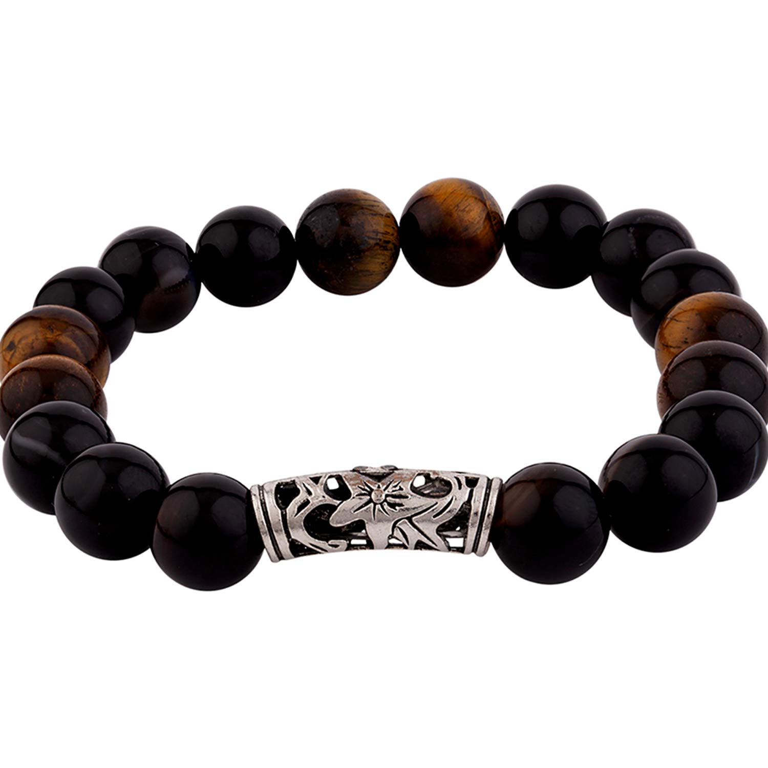 Featuring Tiger's Eye stones, this bracelet has been made from brass. Oxidized silver plated and a good match for casual attire. To make your accessories last longer avoid harsh chemicals and moisture. Keep dry, clean with dry cloth and wear with panache. "Indiaâ€s largest fashion jewelry brand DARE, comes from the House of Voylla as a limited edition of handcrafted accessories for the modern Indian men. |