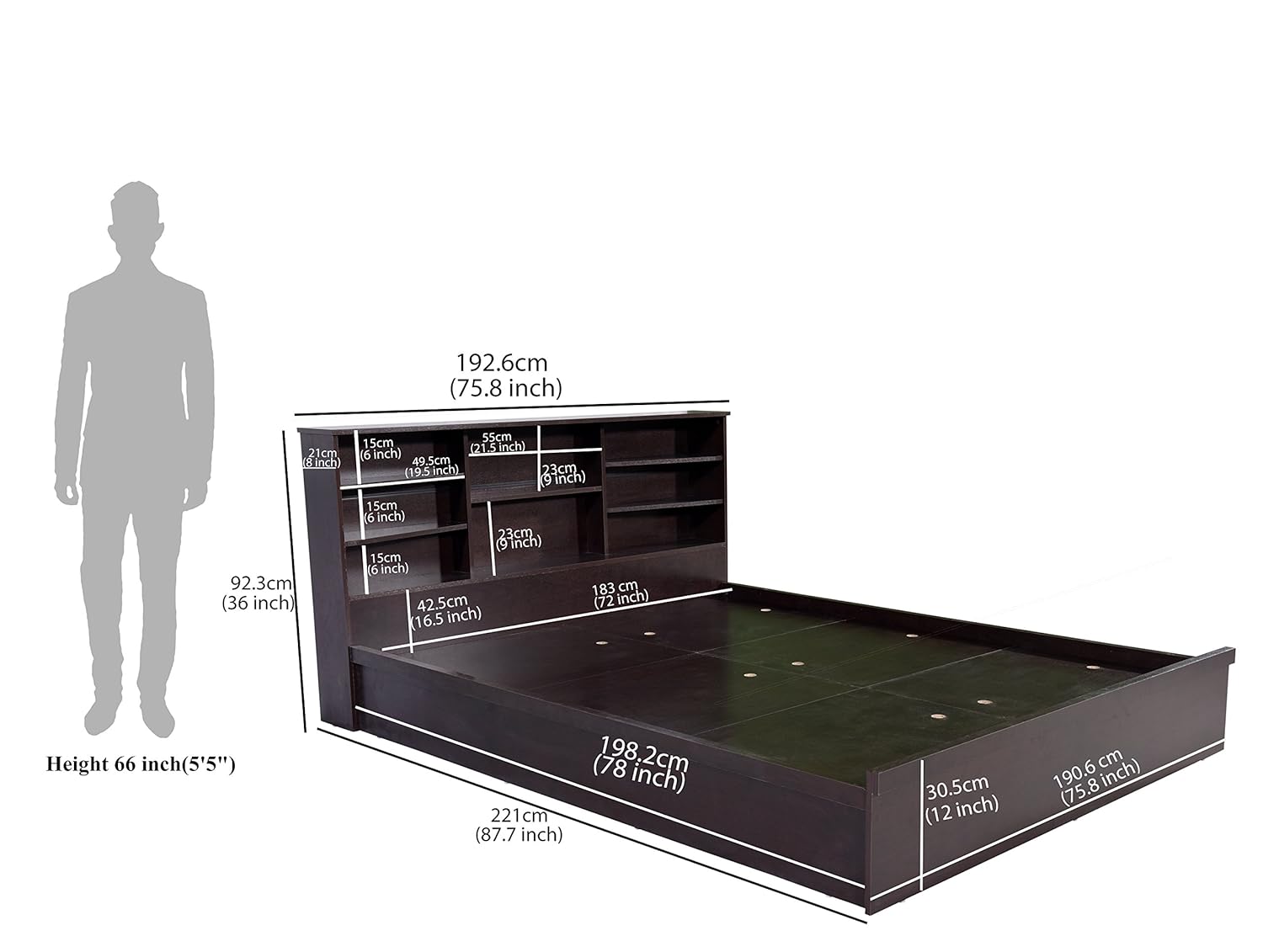 Note: the bed has no box storage