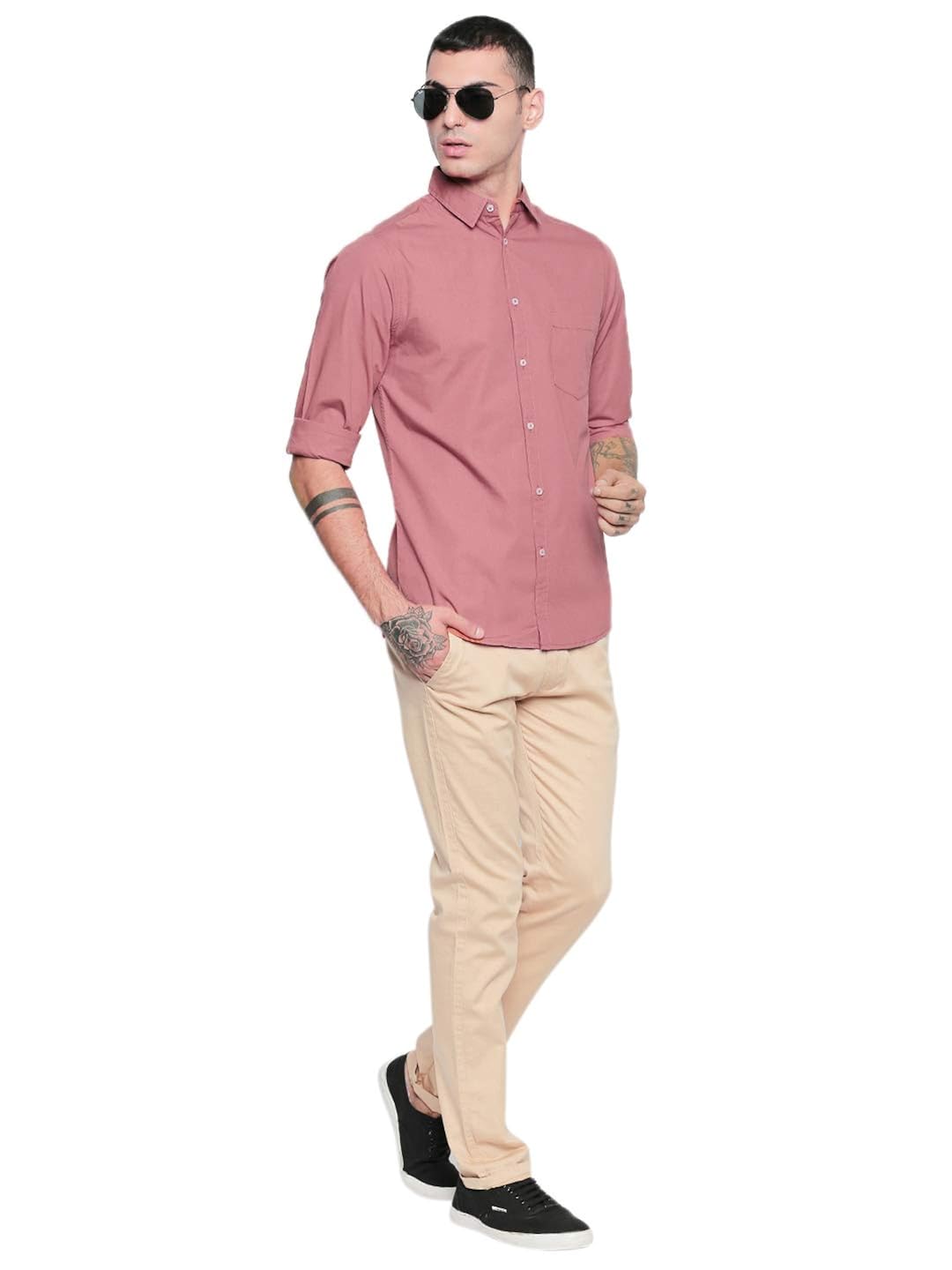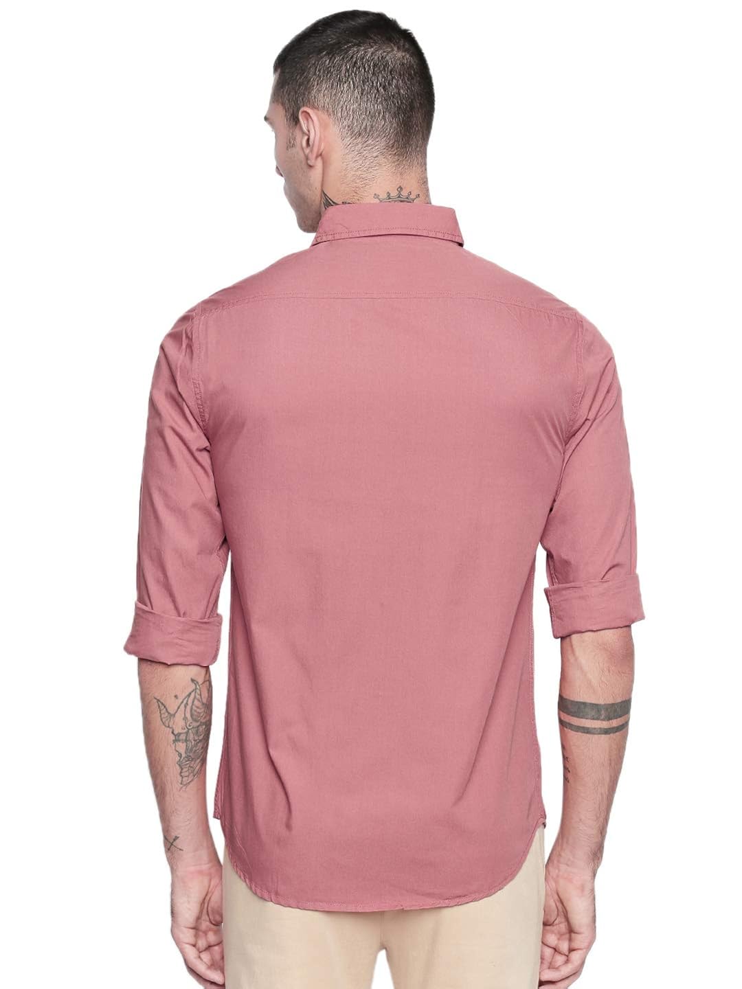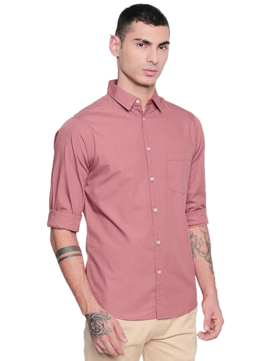 This Casual Solid shirt has a full button Placket, Long Sleeves, Yoke on the shoulder, and a curved hemline