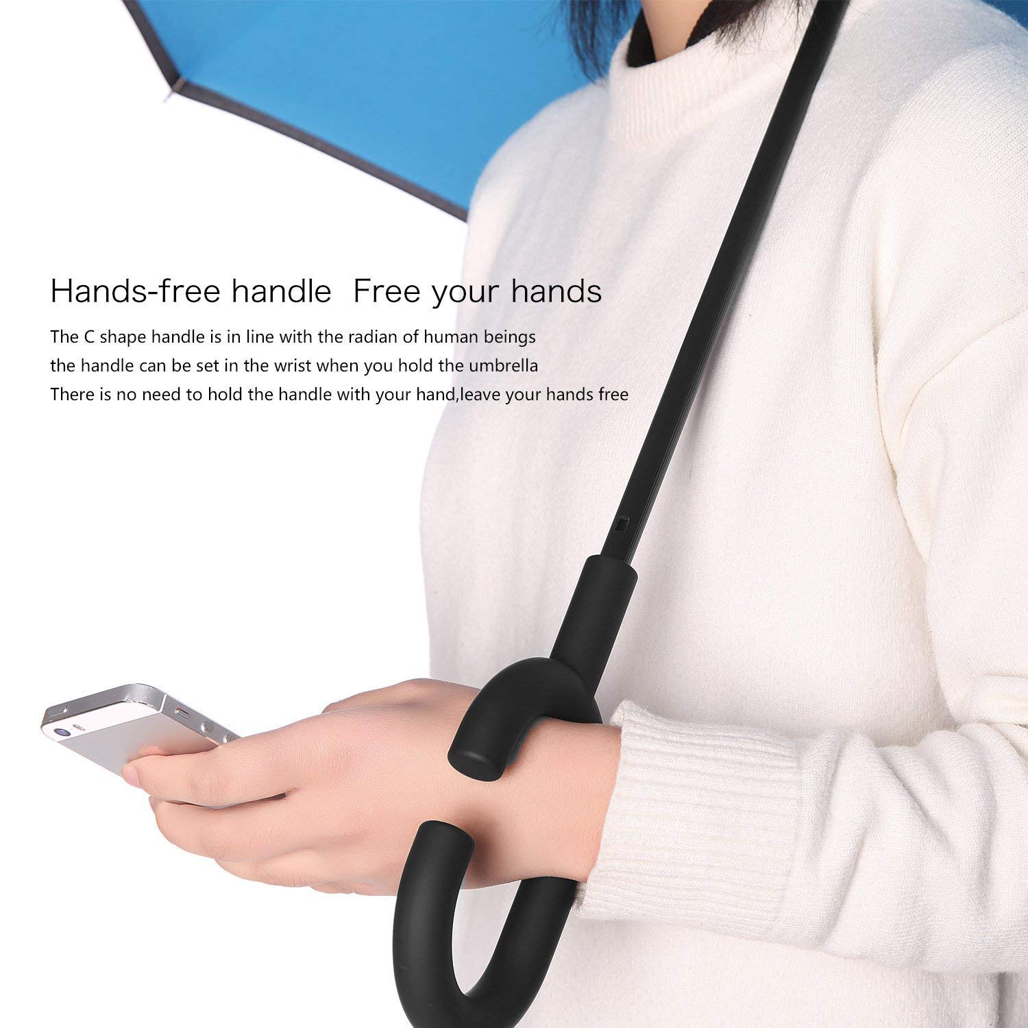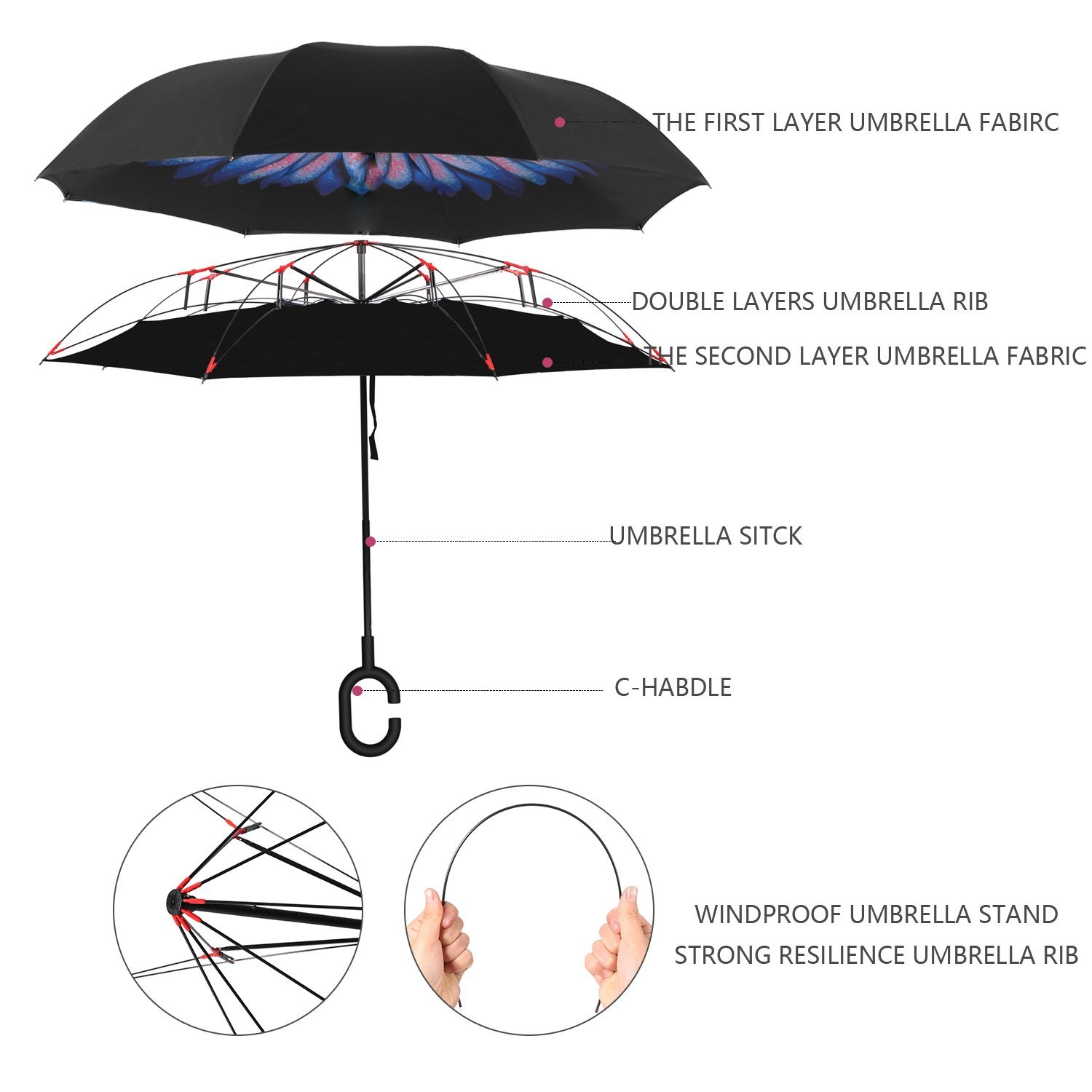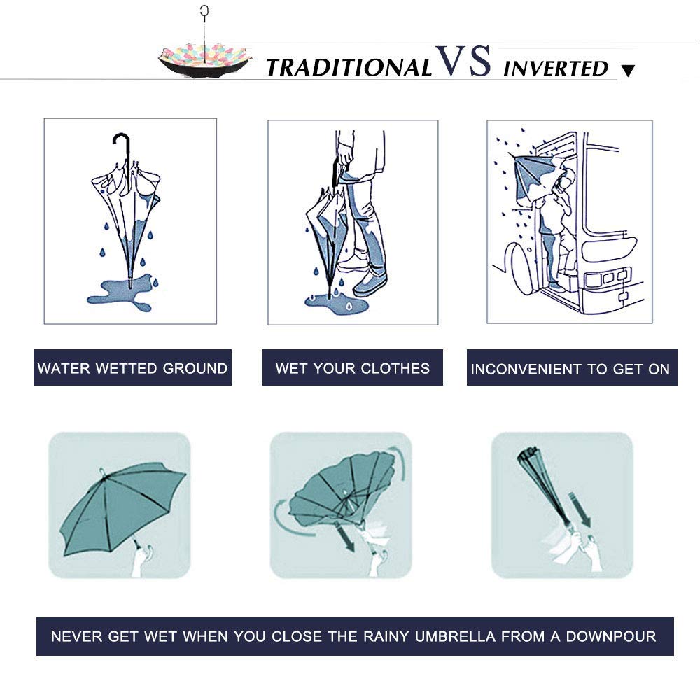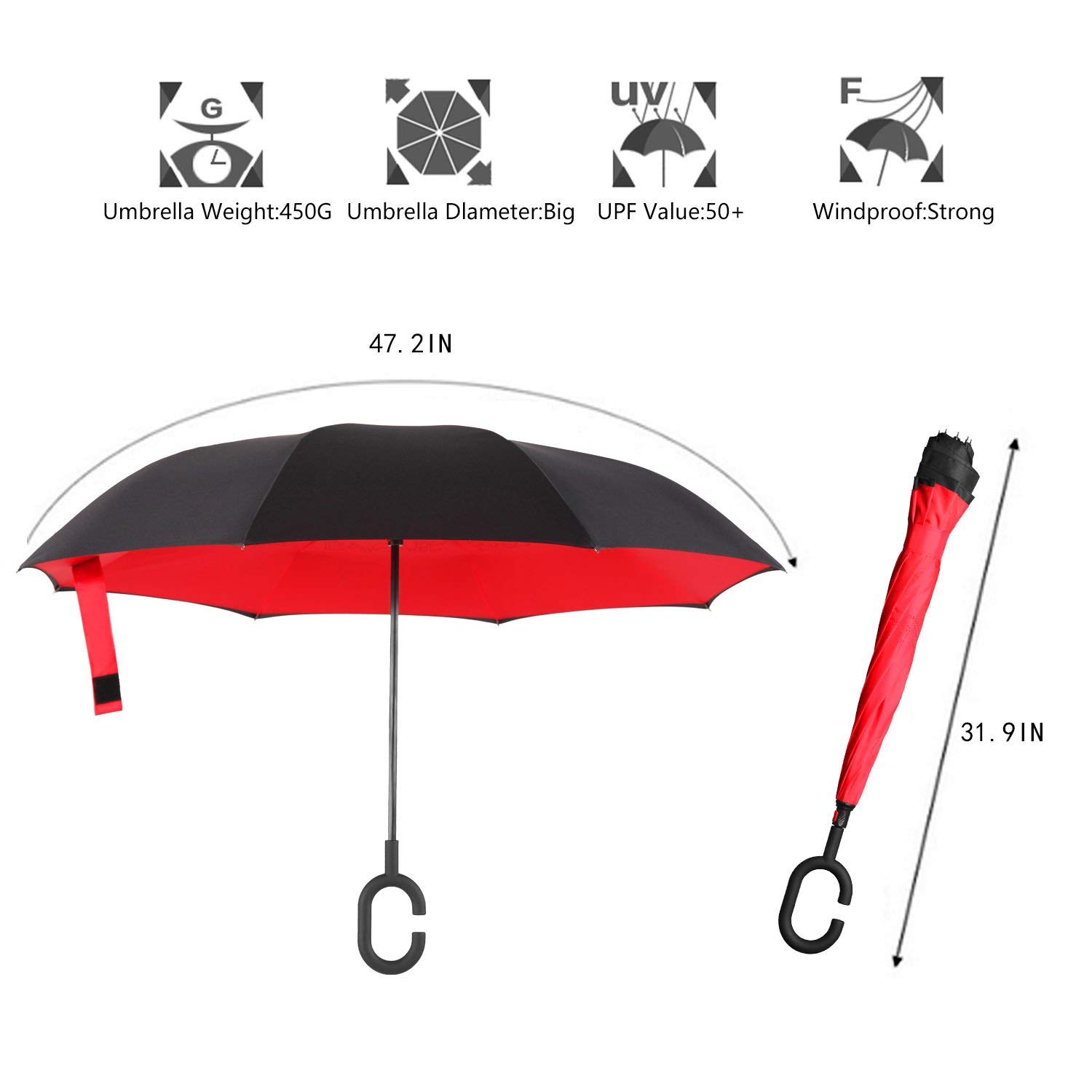 The umbrella is 86cm is length and the canopy length is 106cm. The stick umbrella is at a convenient height to carry around and when opened the canopy is large enough for two people. The umbrella does what it is meant to do - give cover from rain, wind and sun! The umbrella is double layered, the outer layer is black and the inner layer is colored.The structure of the umbrella is extremely durable and has been thoroughly tested against fierce winds/ storms and heavy rain. The umbrella comes with a carry case that has a sling around it for easy carry. What is unique about this umbrella -well (unlike conventional umbrella) when you close the umbrella the outer layer is folded on the inside! Even after use on the rain, you will hold a dry umbrella! The advantages of this umbrella Rather than dripping water when a conventional umbrella is closed and put away, the the wet used side is on the inside of the umbrella the outer layer of the closed umbrella remains dry Solves the problem of poking people with an umbrella's spokes because it opens from the top rather than the bottom With its unique way of closing the umbrella it reeks of convenience especially when you want to get into the car The ribs and spokes are in between the two layers of the canopy that gives the umbrella a very stylish look |