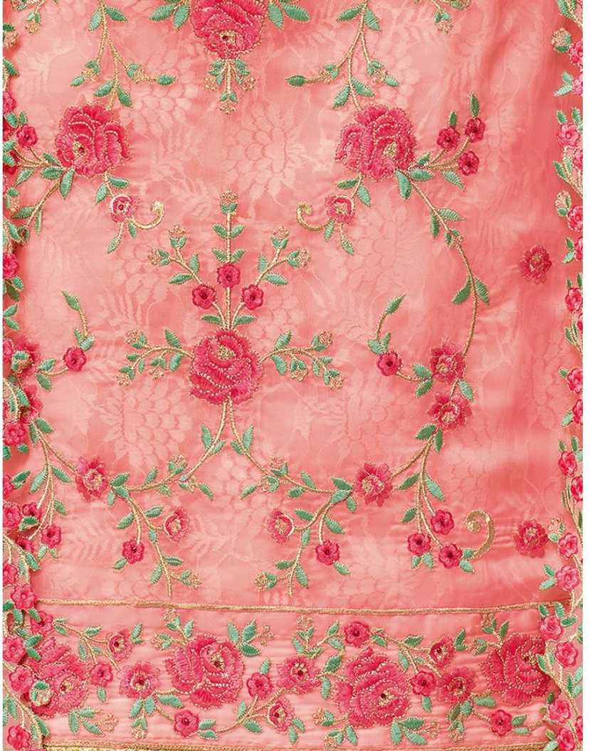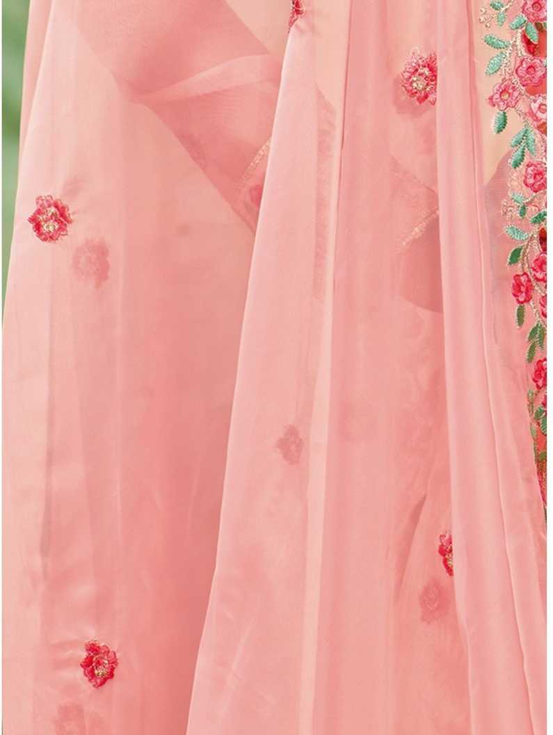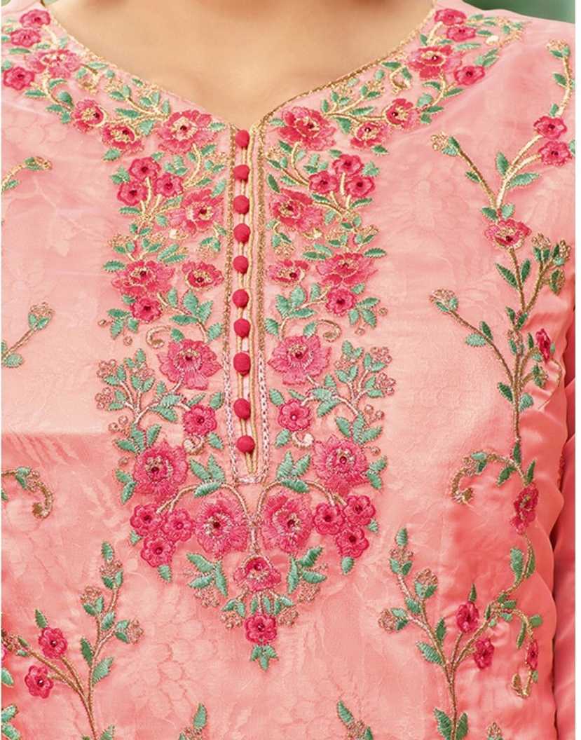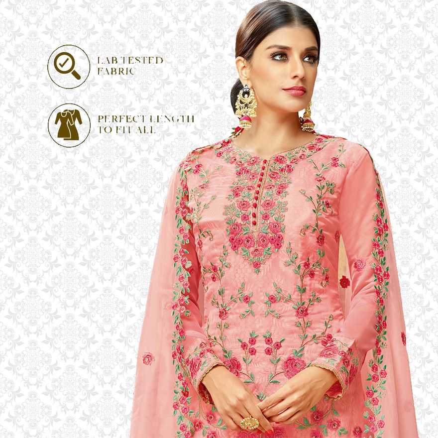 Pink Heavy Embroidered Oragnza Women's Semi-Stitched Palazzo Suit, Product Colour May Slightly Vary Due to Photographic Lighting Sources or Your Monitor Settings. |