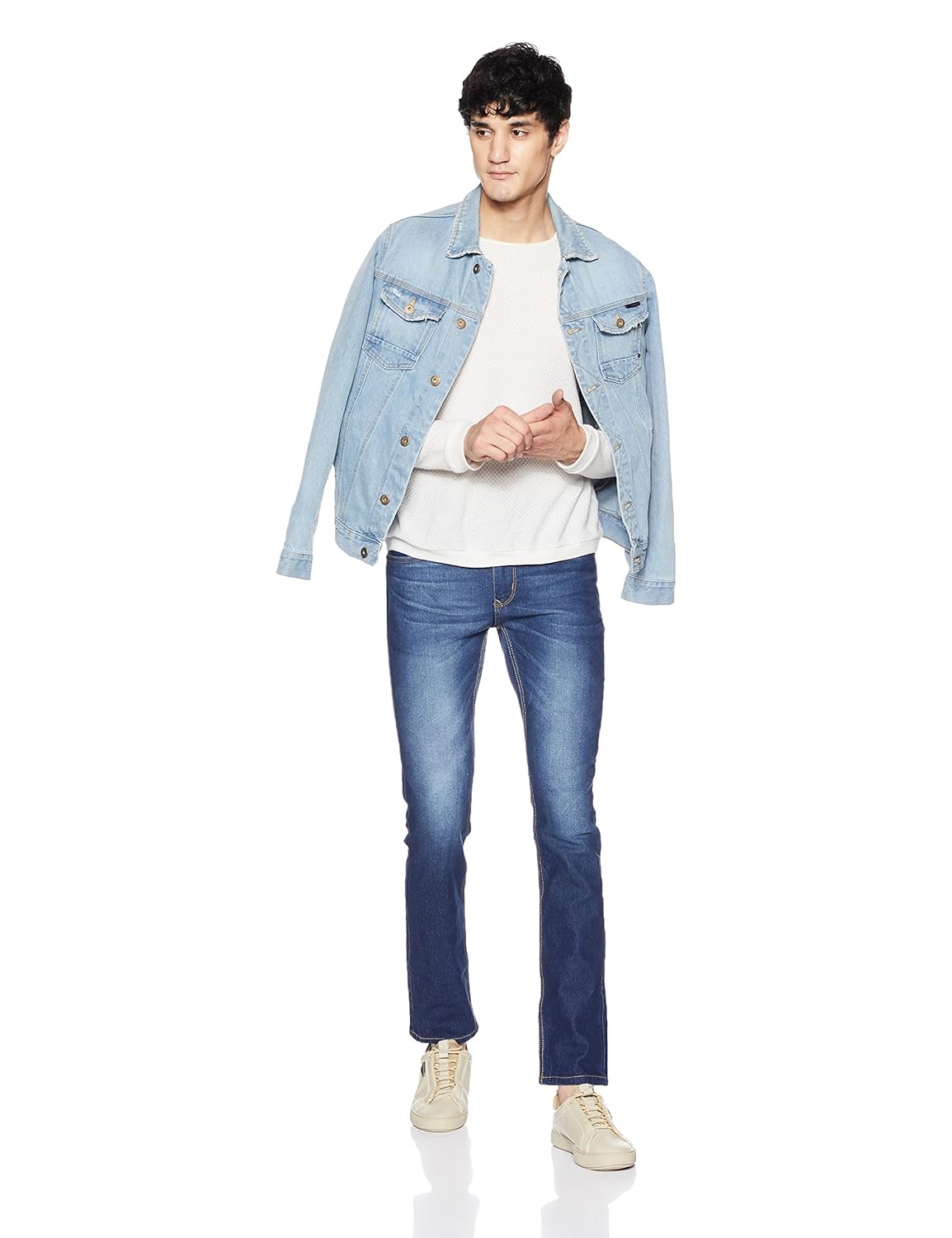 74% Cotton, 25% polyester and 1% spandex, slim fit, mid rise