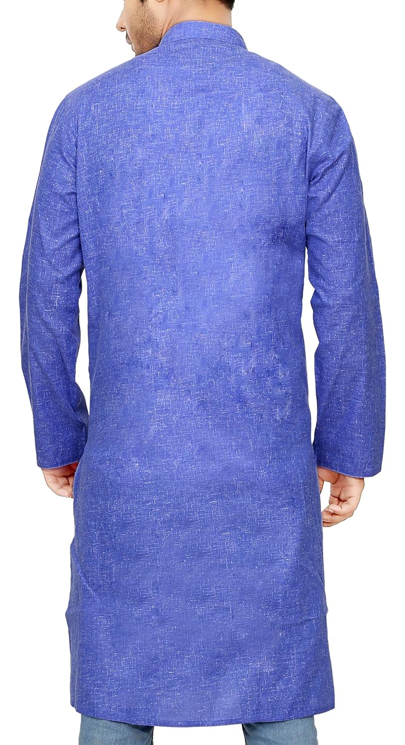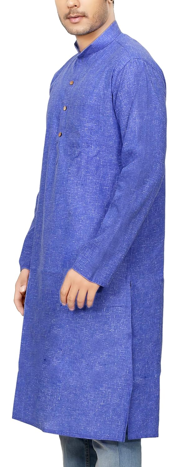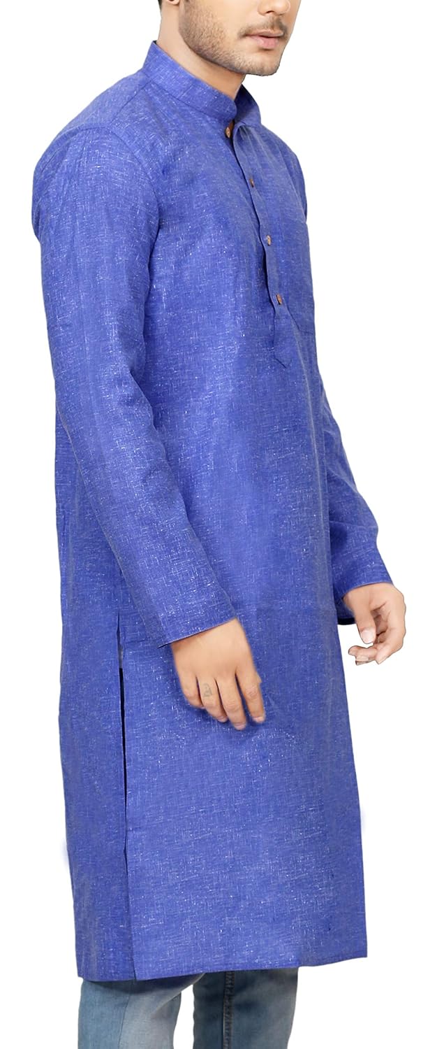 This product is made from cotton and finished in an attractive blue color. It features long sleeve, banded collar, and is targeted towards men. Furthermore, it is recommended to be kept away from extreme heat, fire and corrosive liquids to avoid any form of damage. |