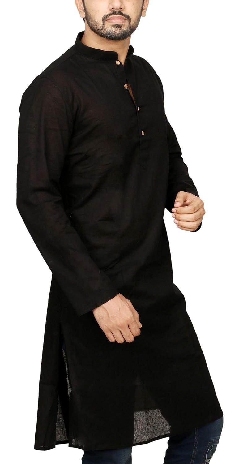This product is made from cotton and finished in an attractive black color. It features long sleeve, banded collar, and is targeted towards men. Furthermore, it is recommended to be kept away from extreme heat, fire and corrosive liquids to avoid any form of damage. |