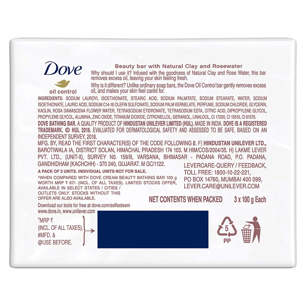 The dove oil control / oil balance bathing bar is infused with the purifying properties of natural clay and rosewater. It is a mild cleanser that removes excess oil, while retains moisture