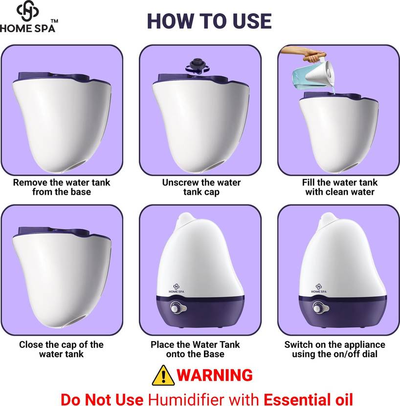 Home Spa Luxury Humidifier for your office and home. No filters required. Made from premium ABS material. Holds 2 Liters of water and works for 8 hours. The product is made with American Technology by Nureca Inc New York the USA