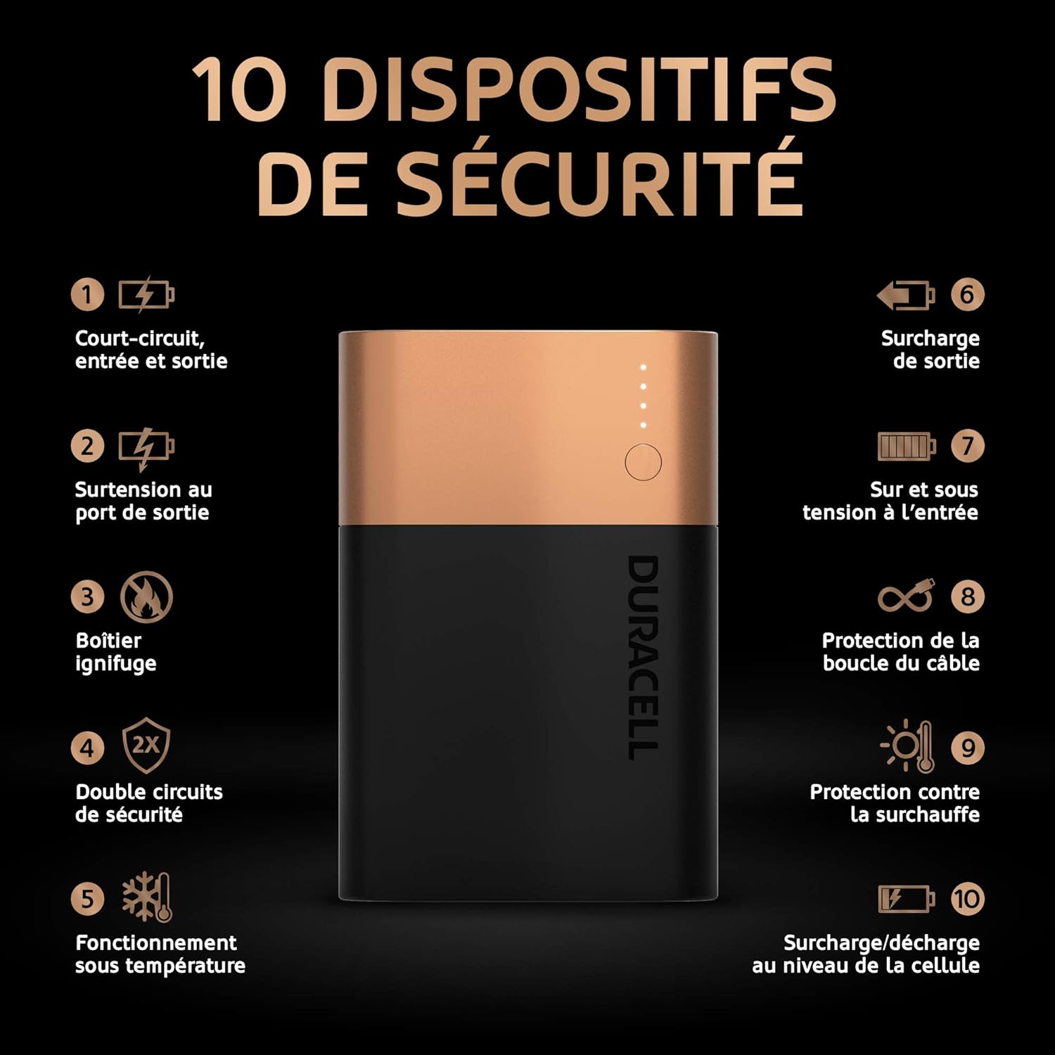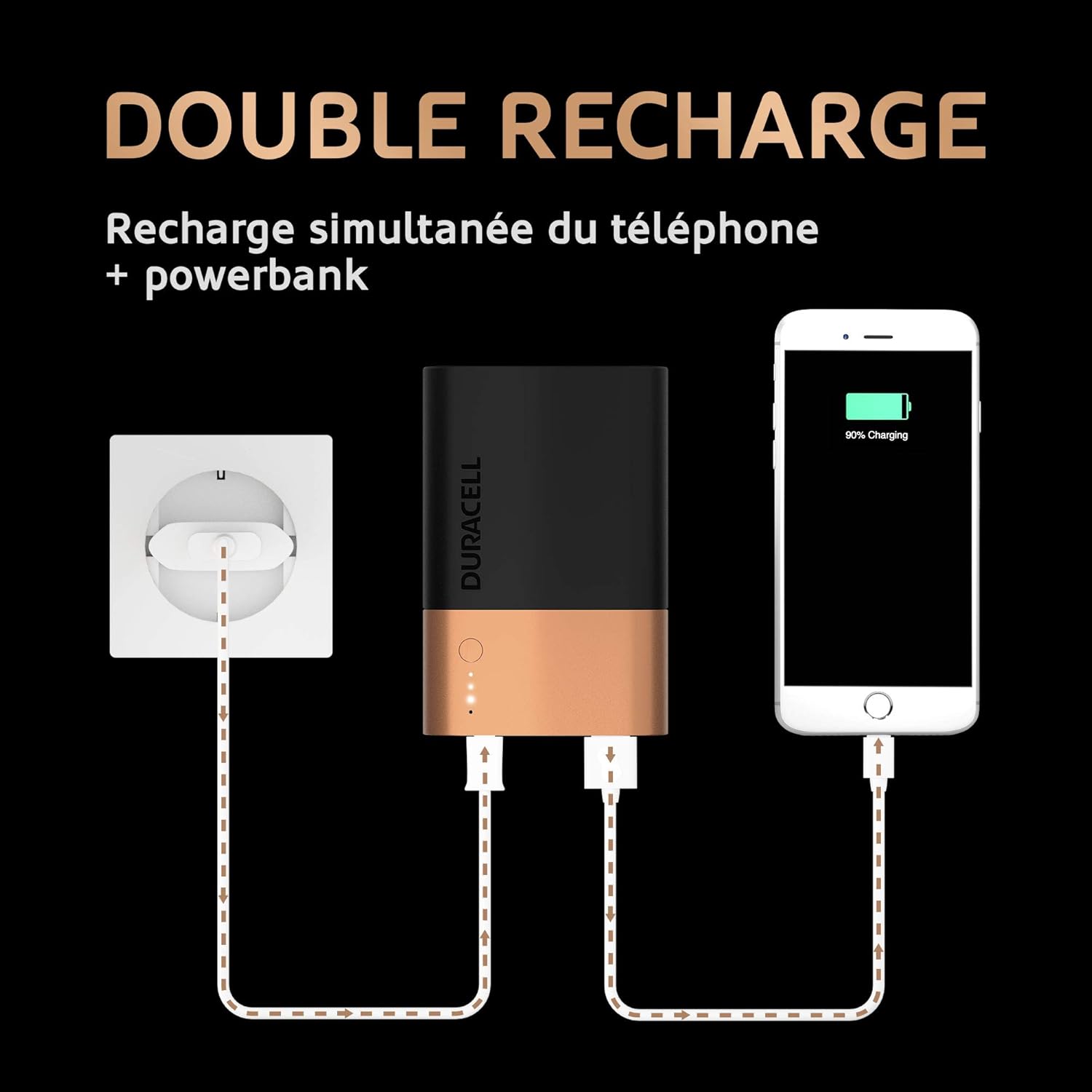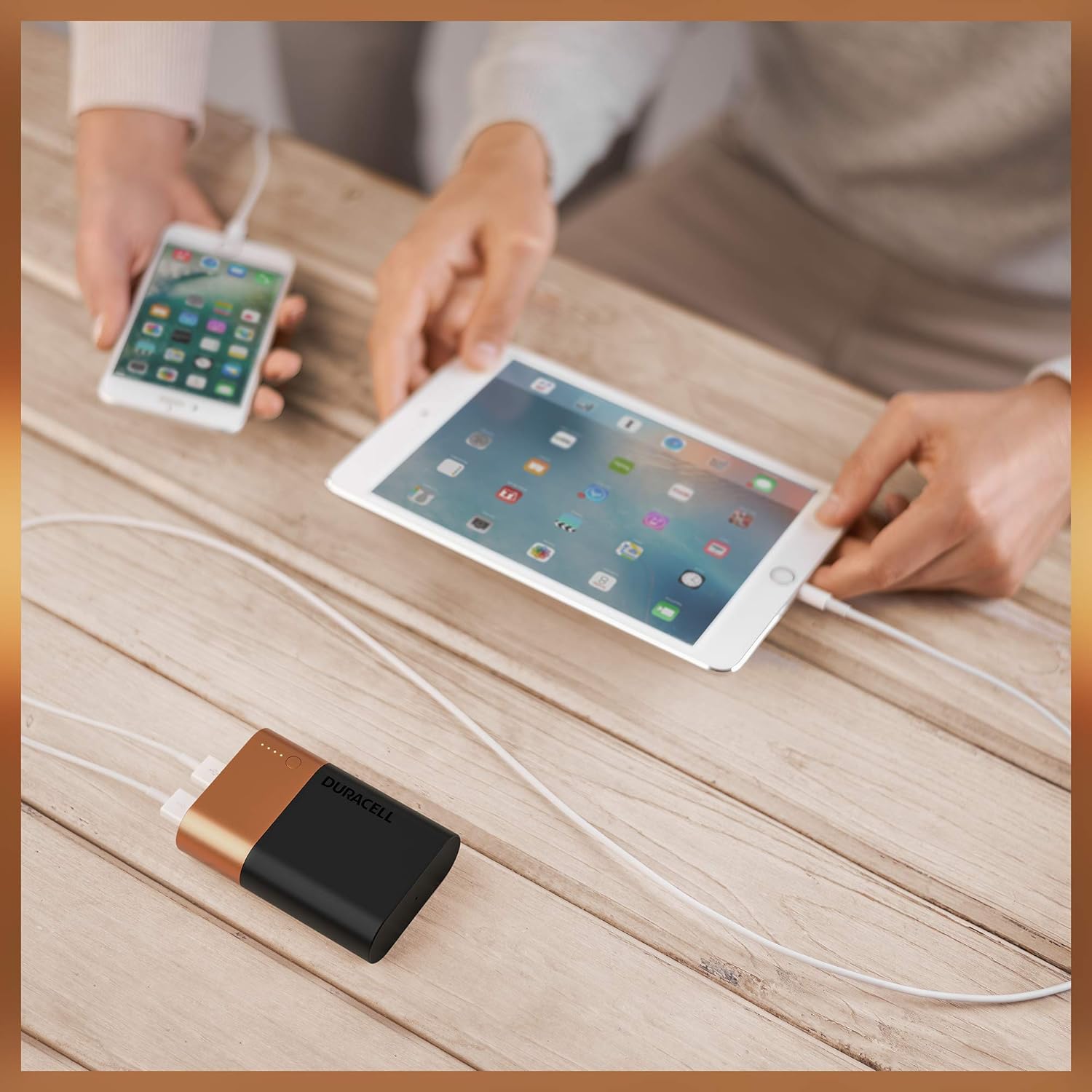 Duracell Rechargeable Powerbank 10050 mAh is a reliable source of power that frees you from the wall and lets you keep your devices charged everywhere you go. This high capacity power bank is designed to provide multiple charges and up to 72 hours extra of talk or surf time for one or two devices thanks to 2 output ports, making it a great back-up solution for longer journeys, business trips and all those moments when you don’t have access to power outlets. Thanks to the dual charge technology, you can simultaneously charge both the power bank and your device. Plus, with the LED indication, you can always check how much energy is left. With Duracell’s 3-year guarantee and 10 safety features, you can go about your day with full power and no worries. Hours of time and number of charges are estimated by comparing the iPhone 7 internal battery specification on apple. com to the internal battery of Duracell Powerbank. Results will vary by device and conditions. |