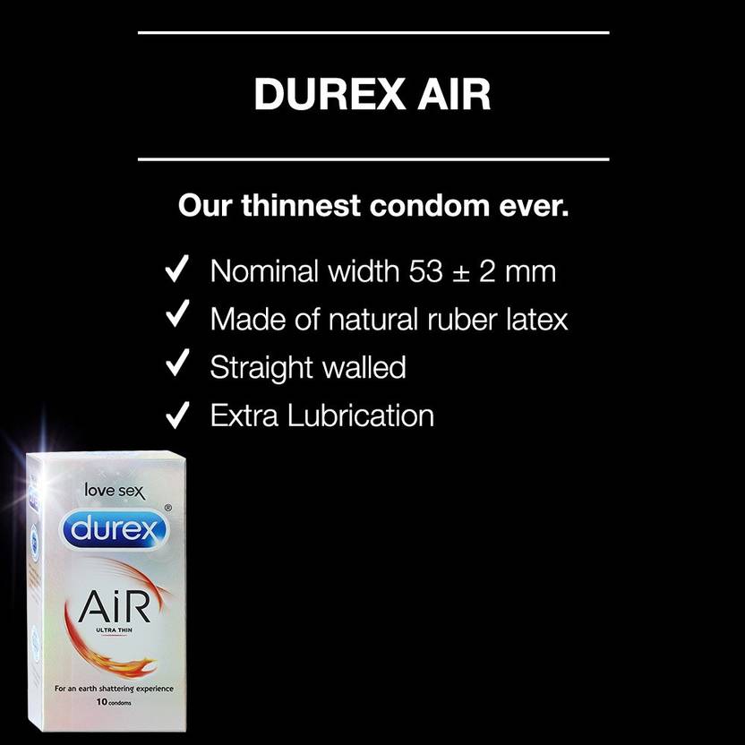 The Durex Air condoms take on two of your biggest quests, complete intimacy and total protection. They are durable and are tested to withstand breakage.