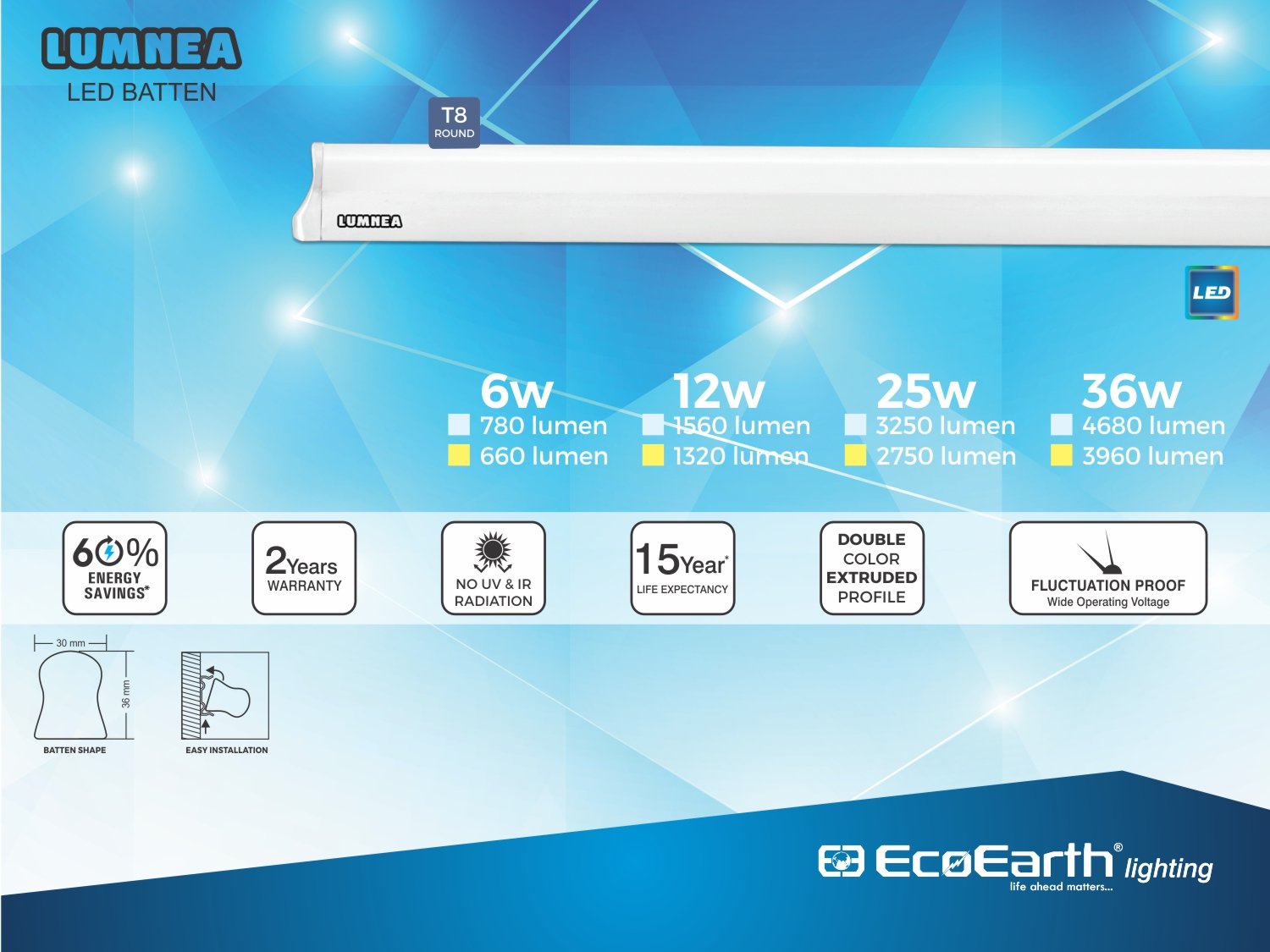 EcoEarth Lumnea LED Wall Batten Tubelight 6W, Warm White 3000K (1 Feet), 2 Years Warranty - BIS Approved