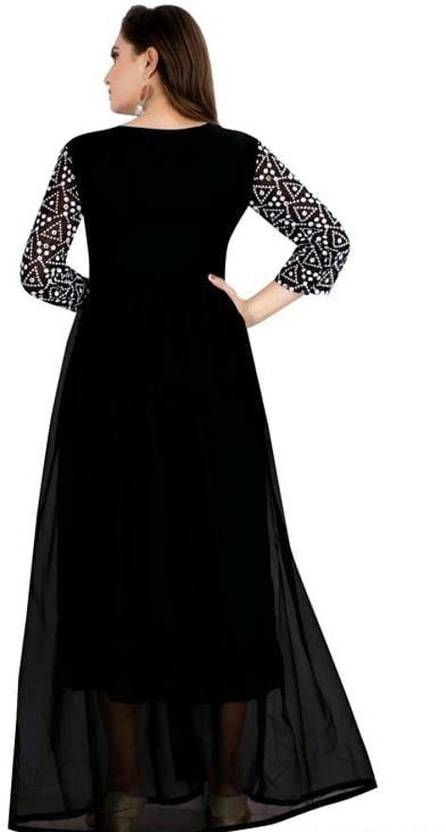 Ejoty Fashion Georgette Stitched Flared/A-line Gown (Black)
