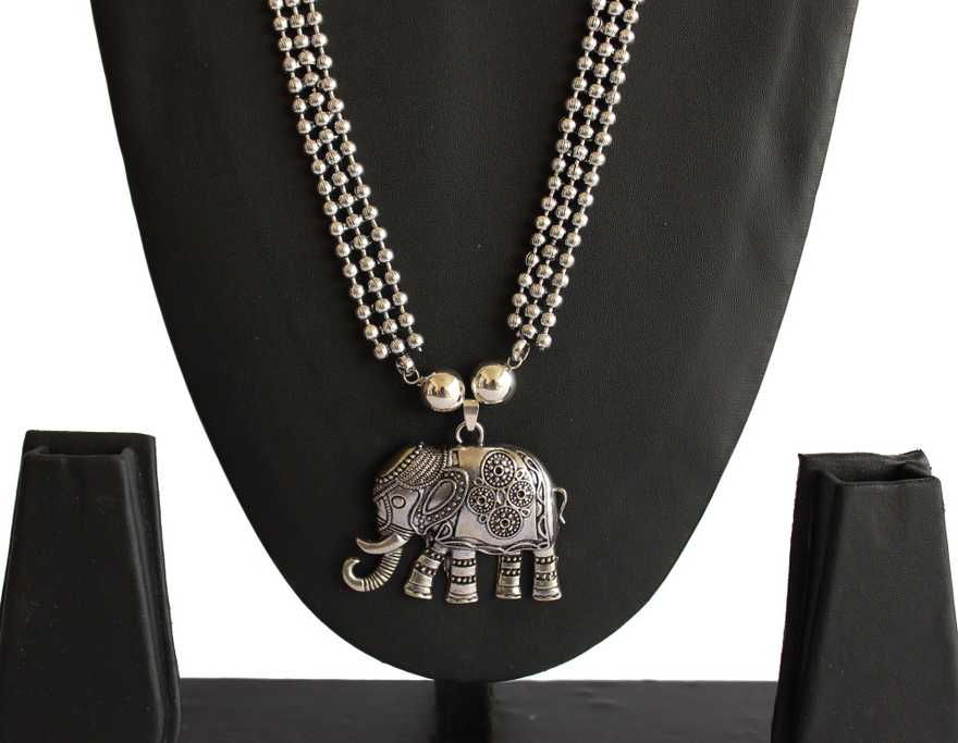 Elephant Design Afghani German Silver Pendant and Long Chain Necklace |