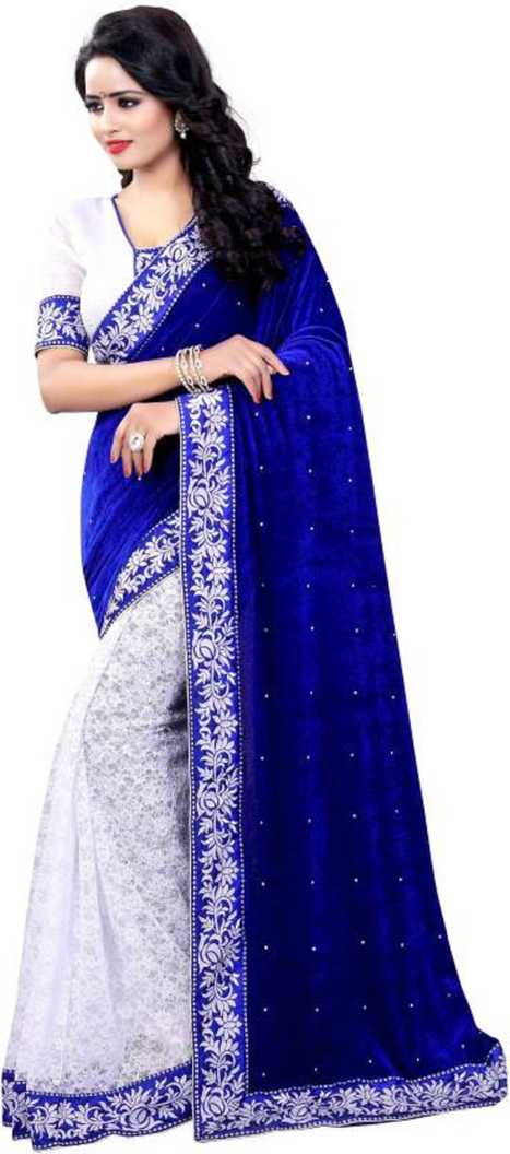 This is a very beautiful Gold class Pallu Work Saree from Ethnic Wear., This Saree is made by Pure Velvet & Rasal Net fabric., Velvet is anti allergy fabric., In addition it is very smooth and comfortable to wear., This is a Velvet & Rasal Net Embrlished Saree., The pallu of the saree is contains 2 Mtr velvet Portion other rasal net., The other part of the saree is long enough to wear it easily., The other part of the saree is Plain and it also contains Blue Jacquard Lace., it is very classy & rich., The saree contains a Dhupian White un-stitched blouse piece also., Buy this saree and feel the extraordinary joy of elegance style and the latest Gold fashion., The saree contains full length so that every girl can wear it easily. |