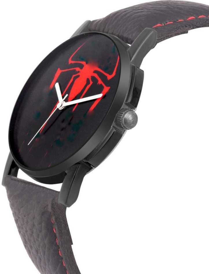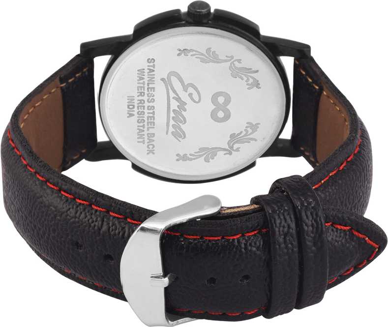 Eraa Men Analog Black Red Spider wrist watch Brand: Eraa, Exclusive Watch For Men, 1 year Manufacturer's Warranty, Japaneses Quartz Movement, Strap Material: Leather, Analog Display. Round shape watch with black strap. It’s a water resistant wrist watch.