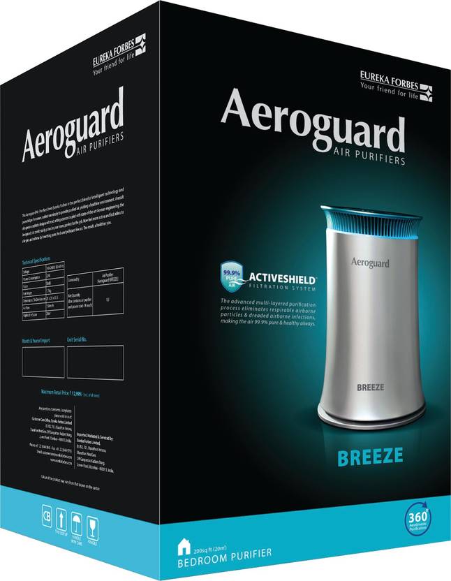 Sweeping, mopping and dusting all the furniture everyday will keep your house looking clean, but how can you be sure that the air in your house is as clean too? With the Aeroguard Breeze air purifier, your house is not just going to be clean but sterile with pure and hygienic air. Aerodynamic 360 Degree Airflow This air purifier has a powerful 360 degree airflow that draws air into all sides and delivers pure air in the entire room. With a powerful super suction, the air purifier is very efficient in delivering pure air in your house. 5 Stage ActiveShield Filtration System This air purifier is built with a patented 5 stage ActiveShield filtration system that frees your house from all airborne particles and keeps the air 99.9 percent pure, thus keeping you safe from any airborne infections. Active HEPA Filter Operating on a nanoscale, the Active HEPA filter in this air purifier ensures that your house is free from even airborne particles as tiny as 0.3 microns, keeping your house sterile and free from bacteria, combustion particles, pollen and other ultrafine particles that a lot of air purifiers fail to get rid of. Active 10X Pre-Filter The air purifier also has the Active 10X filter that is cylindrical and frees your house from large suspended solids like pet dander, dust and dirt, keeping your house clean and hygienic at all times. Active Nano Silver With this Active Nano Silver, this air purifier has strong sterilization capacities, controlling the growth of fungi, bacteria and other air born germs effectively. Active Carbon Filter With the Active Carbon Filter in your air purifier, you can now be sure that your house is not just free from all bad odors but harmful and toxic gases too. Anion Generator With Fragrance Diffuser By producing negative ions, the Aeroguard Breeze removes all air pollutants from your house, keeping the air around you clean and fresh at all times. You can even add a fragrance of your choice and fill your room with a mood-elevating aroma by using the fragrance diffuser in the air purifier. Mood Lamp This air purifier also has a lamp that provides a soft glow that can relax you with a mellow mood.