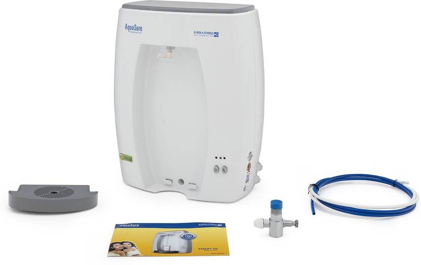 The Eureka Forbes Smart UV water purifier has been specially designed for purifying any kind of water. This water filter gives your family safe and purified drinking water; it removes suspended impurities and other organic chemicals. The Smart UV water filter is an electric purifier which improves the overall taste of water. This water purifier by Eureka Forbes boasts of Quartz UV technology purification method which destroys disease-causing bacteria and virus from water. This feature protects your family from water-borne diseases. This water purifier by Eureka Forbes is certified by the Indian Medical Association that gives you purified water. Body The Smart UV water purifier has a slim design which fits into your kitchen easily. This water filter by Eureka Forbes has a strong cartridge that purifies 5000 litres of water, thus increasing the life of your appliance. The Eureka Forbes water filter has an in-built voltage stabilizer which ensures that the appliance works even during the voltage fluctuations. The Eureka Forbes Smart UV water purifier measures 310 x 400 x 170 mm. Functions The UV Lamp Sensing Mechanism in this Smart UV water purifier senses the current of UV and monitors the purification process. This purification process removes all chemical substances from the water and gives you completely purified water. The Error Indicator in this Eureka Forbes Purifier is extremely user-friendly so that you don't have to keep a check if the appliance is working properly. This is a convenient feature that alerts you if any error occurs in the purifier.