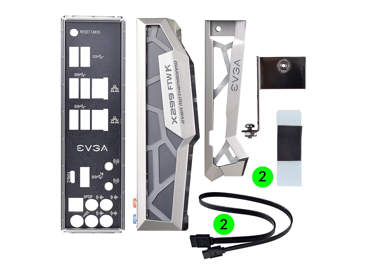 | Included Components | EVGA Driver Installation Disc with EVGA E-LEET X• Rear Case I/O Panel • 3-Way SLI® Bridge• 2 SATA 6G Data Cables• ProbeIT adapter• Socket 20XX Backplate (optional)• Vertical adapter for M.2 Key-E• 2x Thermal Pad for M.2 SSDs• Visual Guide / Bench Stand (incl. standoffs and screws)• USB 2.0 Header Bracket• Case Badge• Manual |