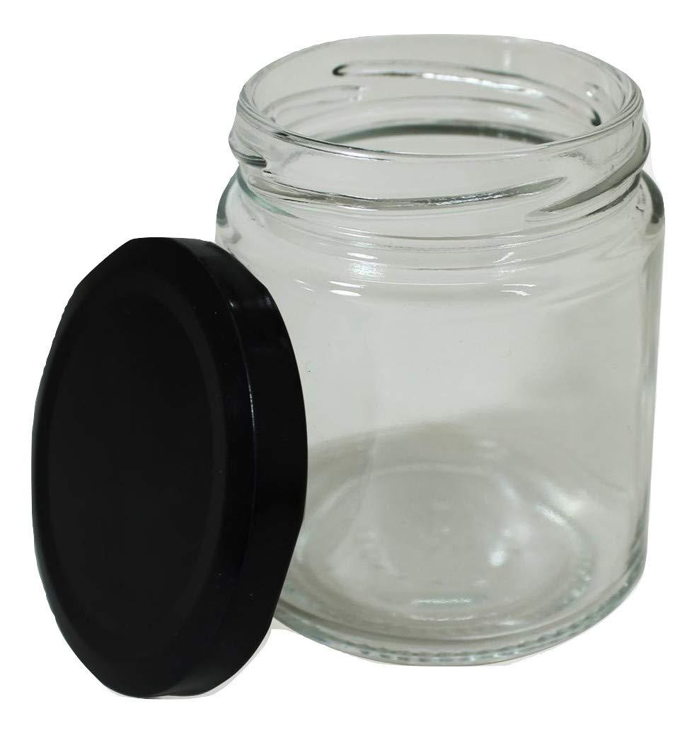 Farkraft 200 ML Glass Jar Round Shape,with Black Metal Color Cap Rust Proof Air Tight, (Set of 6 Pcs)