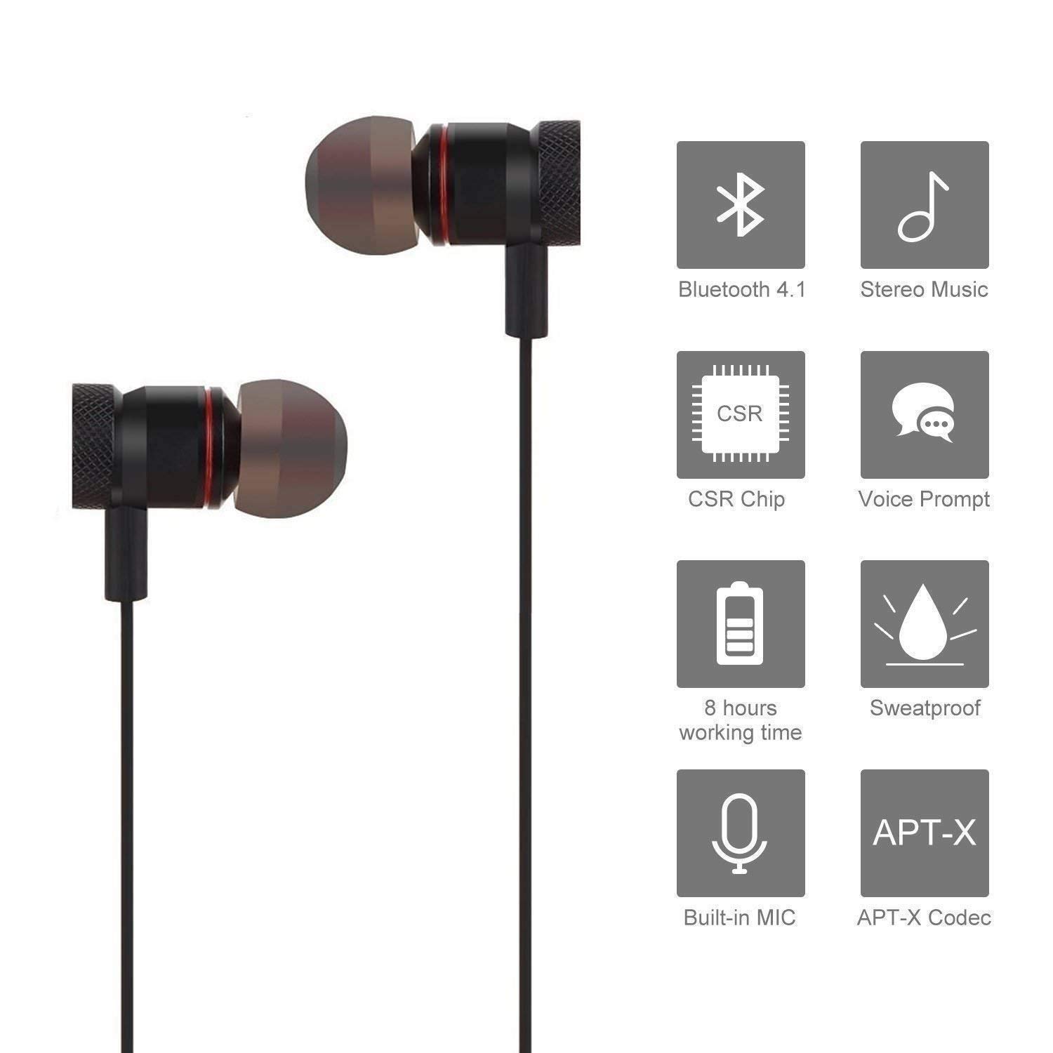 FEBTO Compatible Magnetic Bluetooth Waterproof Headphone with Built-in Microphone for Sports,Running & Outdoor Compatible with Xiaomi Mi 5s (Black)