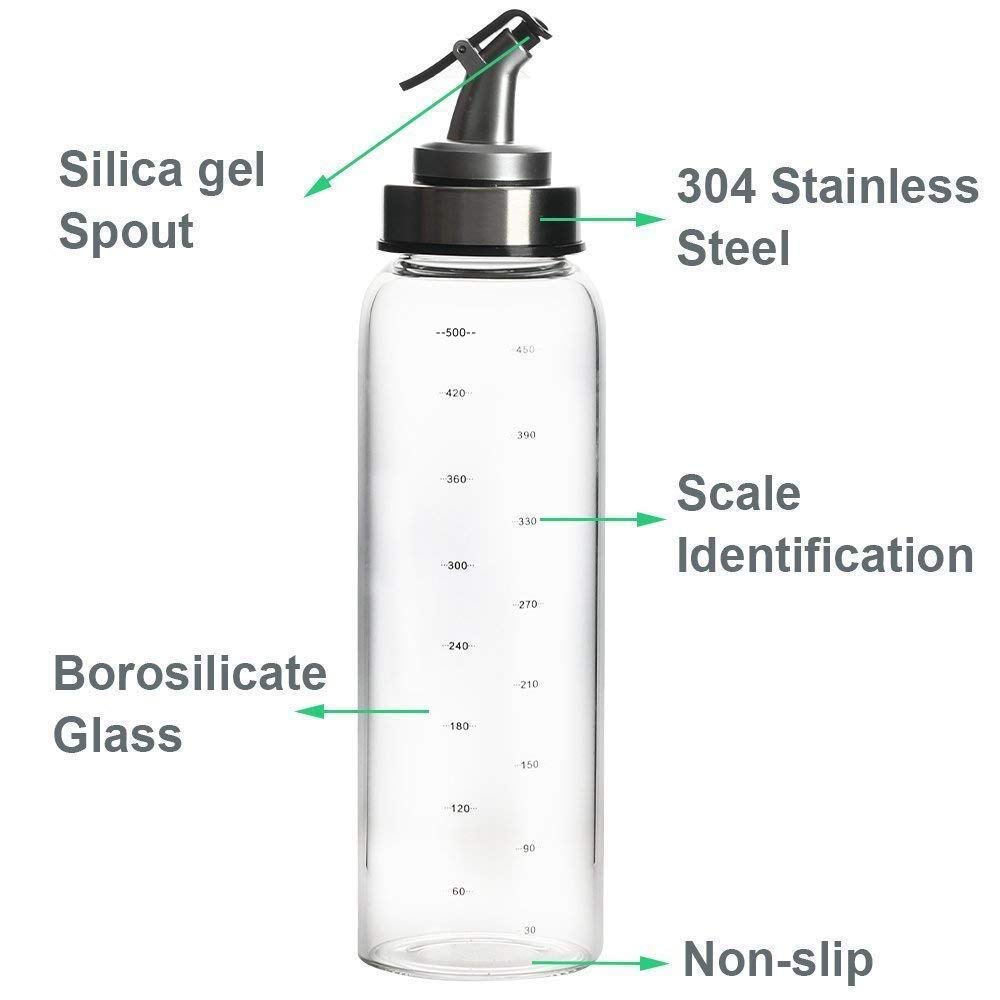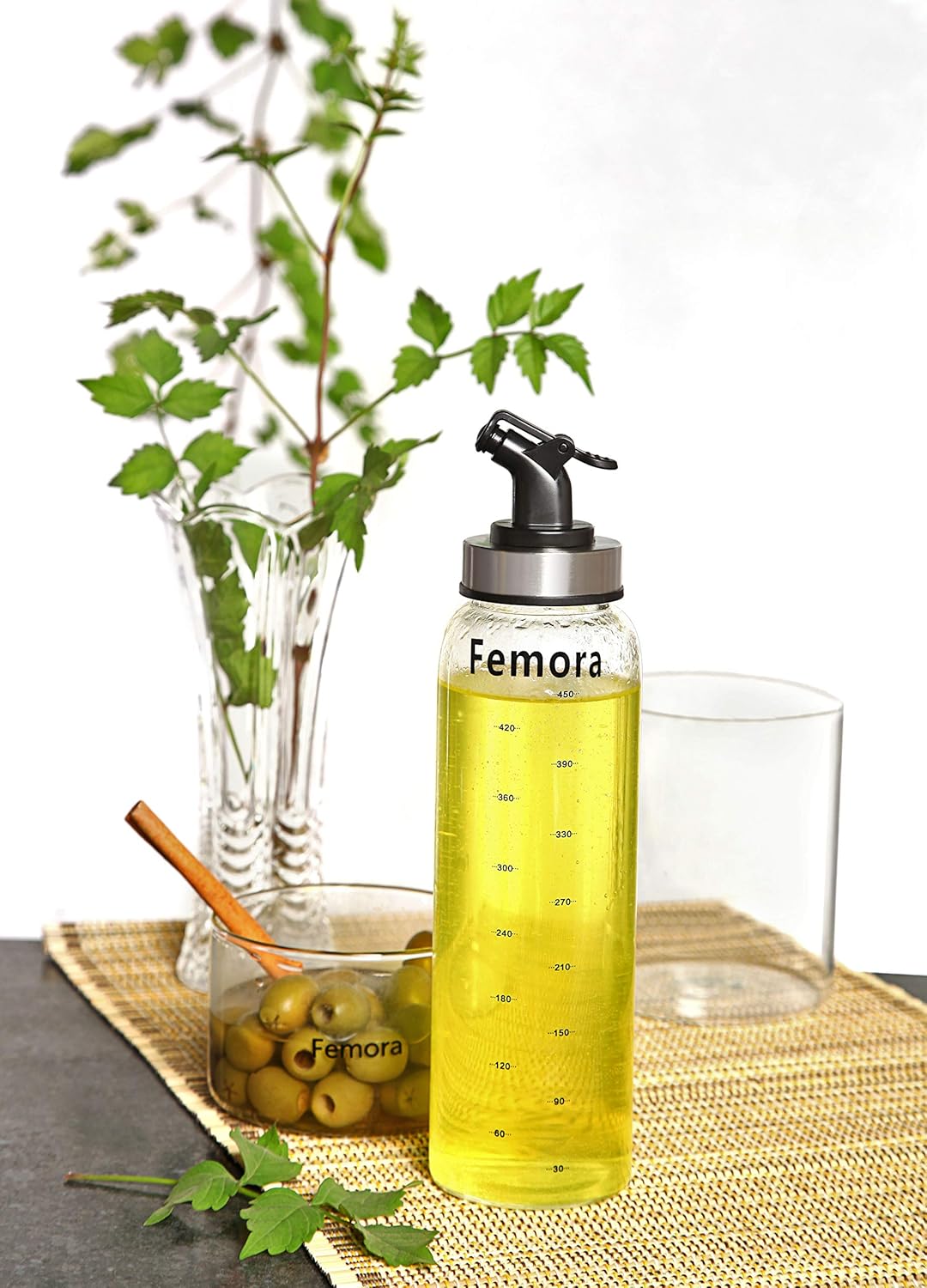 Femora Borosilicate Glass Seasoning Metallic Lid Oil Bottle Jar Dispenser - 500ml, 1 Year Warranty