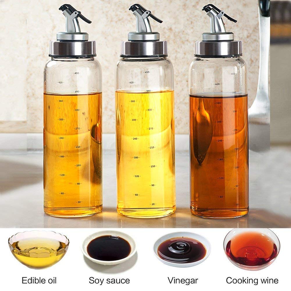 Elegant Borosilicate Bottle having Multipurpose use of storing & organizing food such as olive oil, vinegar, spices, pickles and other necesarry food for your Dinning Table.