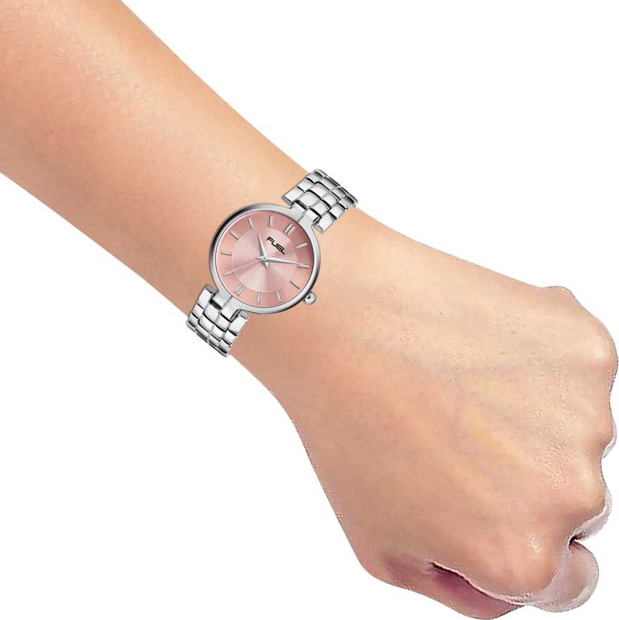 Mineral Glass, Stone Studded on Bezel and Strap, Pink dail |