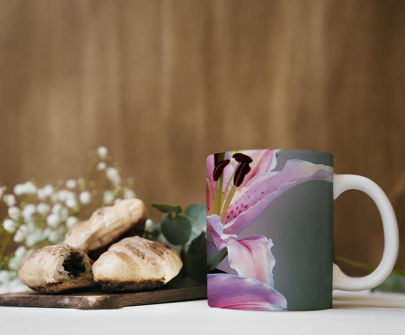 Flipkart SmartBuy Pink Lily Ceramic Mug (350 ml)