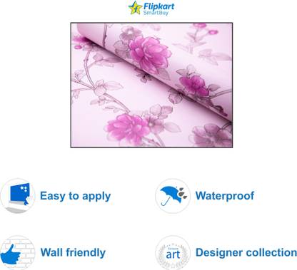Flipkart SmartBuy Wall Stickers Wallpaper Pink Flowers Design for Bedroom Decoration Self Adhesive Extra Large Self Adhesive Sticker (Pack of 1)