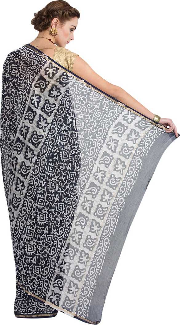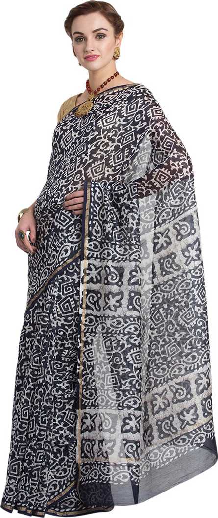 Chanderi Cotton Hand Block Print Saree-Sari, Saree Length : 5.5 mtr ; Blouse Length : 0.8 Mtr with Black Blouse |