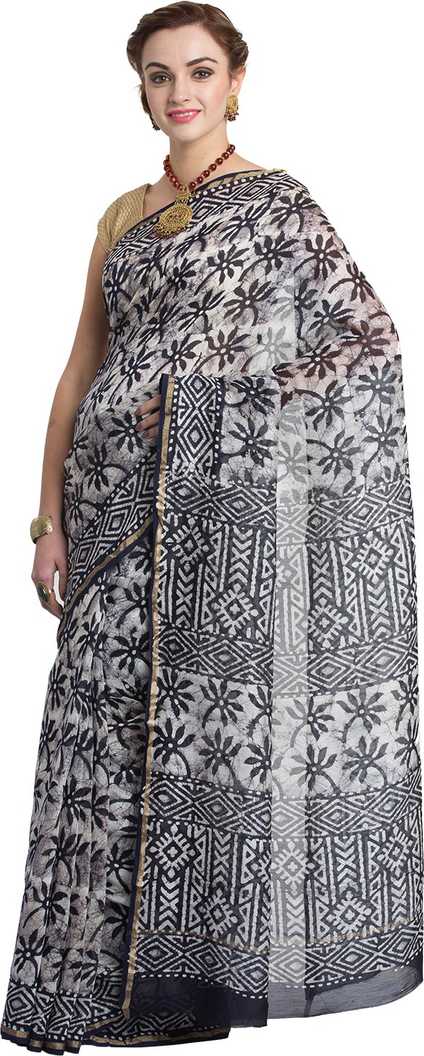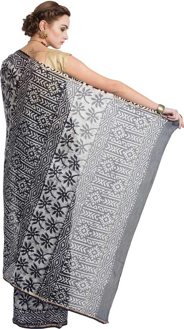 Chanderi Cotton Hand Block Print Saree-Sari, Saree Length : 5.5 mtr ; Blouse Length : 0.8 Mtr with Black Blouse |